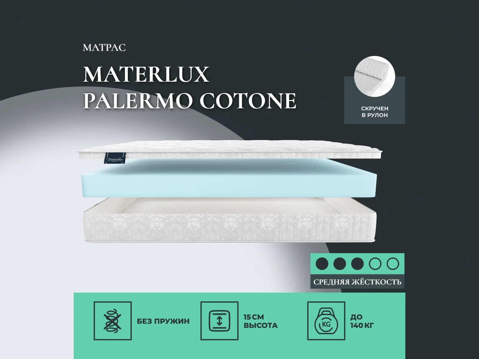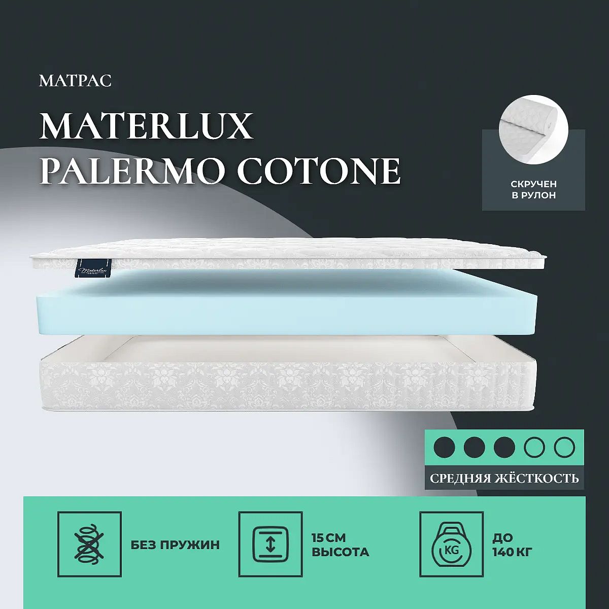 Матрас «Materlux Palermo Cotone» — средней жесткости, которая комфортна большинству людей среднего телосложения. Это — универсальный выбор и детям, и взрослым, и пожилым людям.