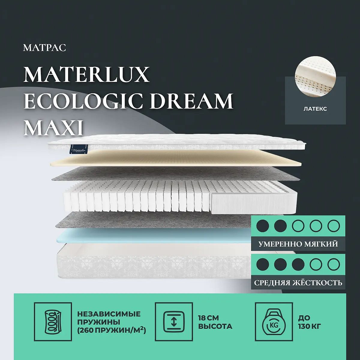 Матрас Ecologic Dream Maxi рассчитан на нагрузку не более 130 кг на одно спальное место.
