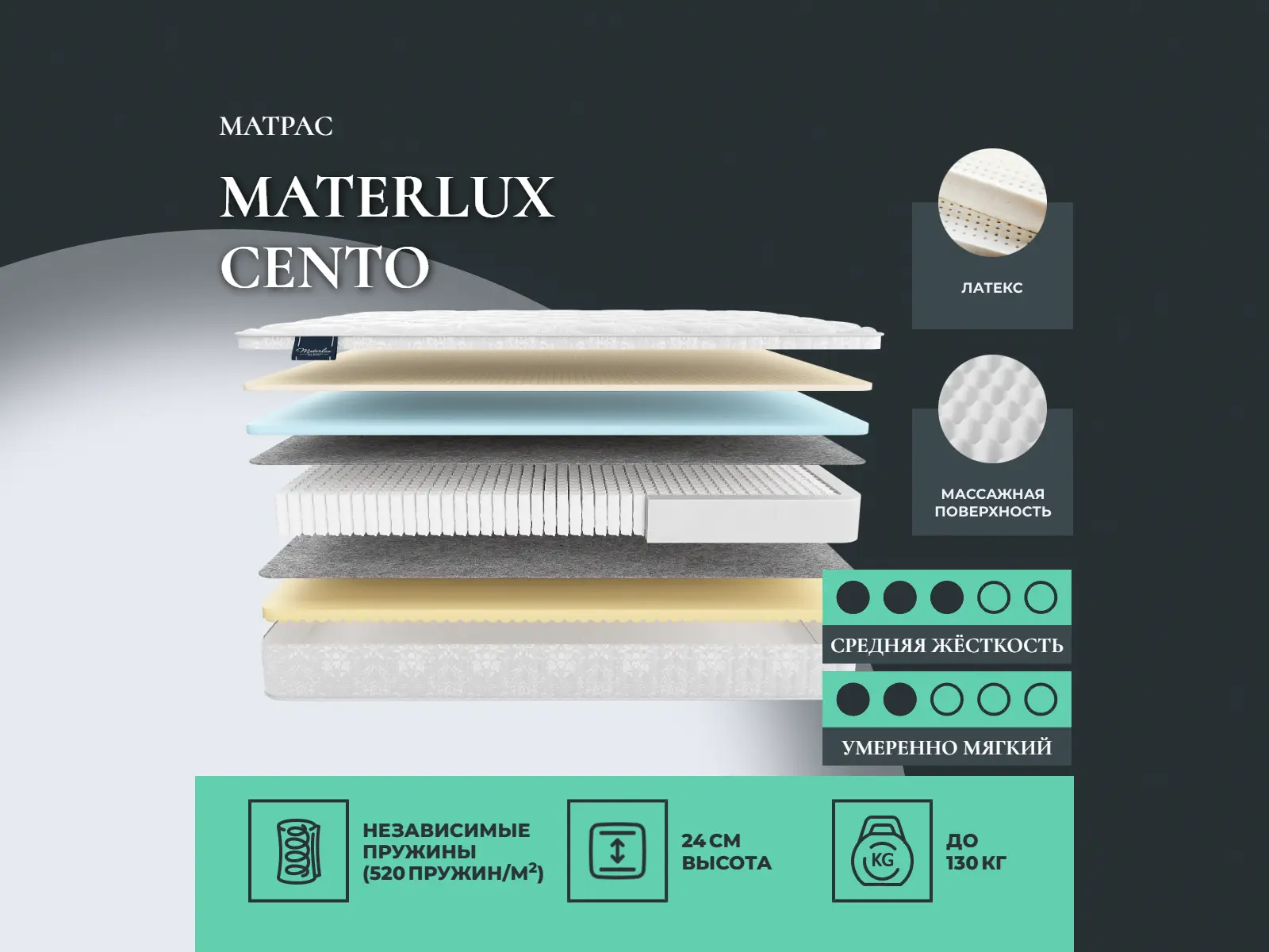Матрас Cento рассчитан на нагрузку не более 130 кг на одно спальное место.