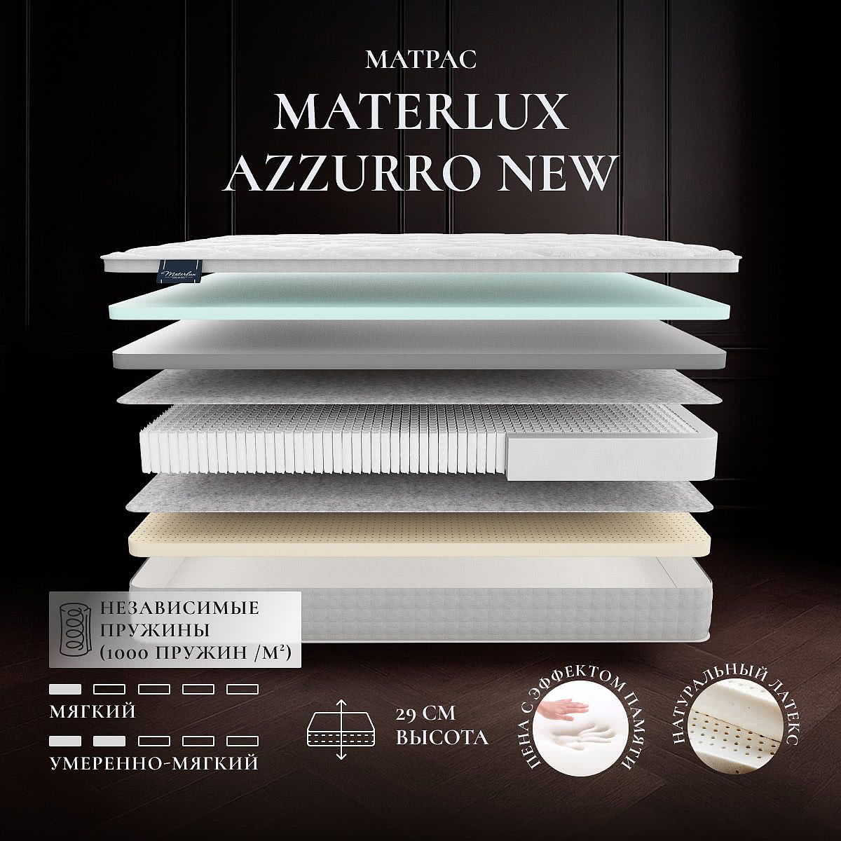 Высота матраса — 29 см.