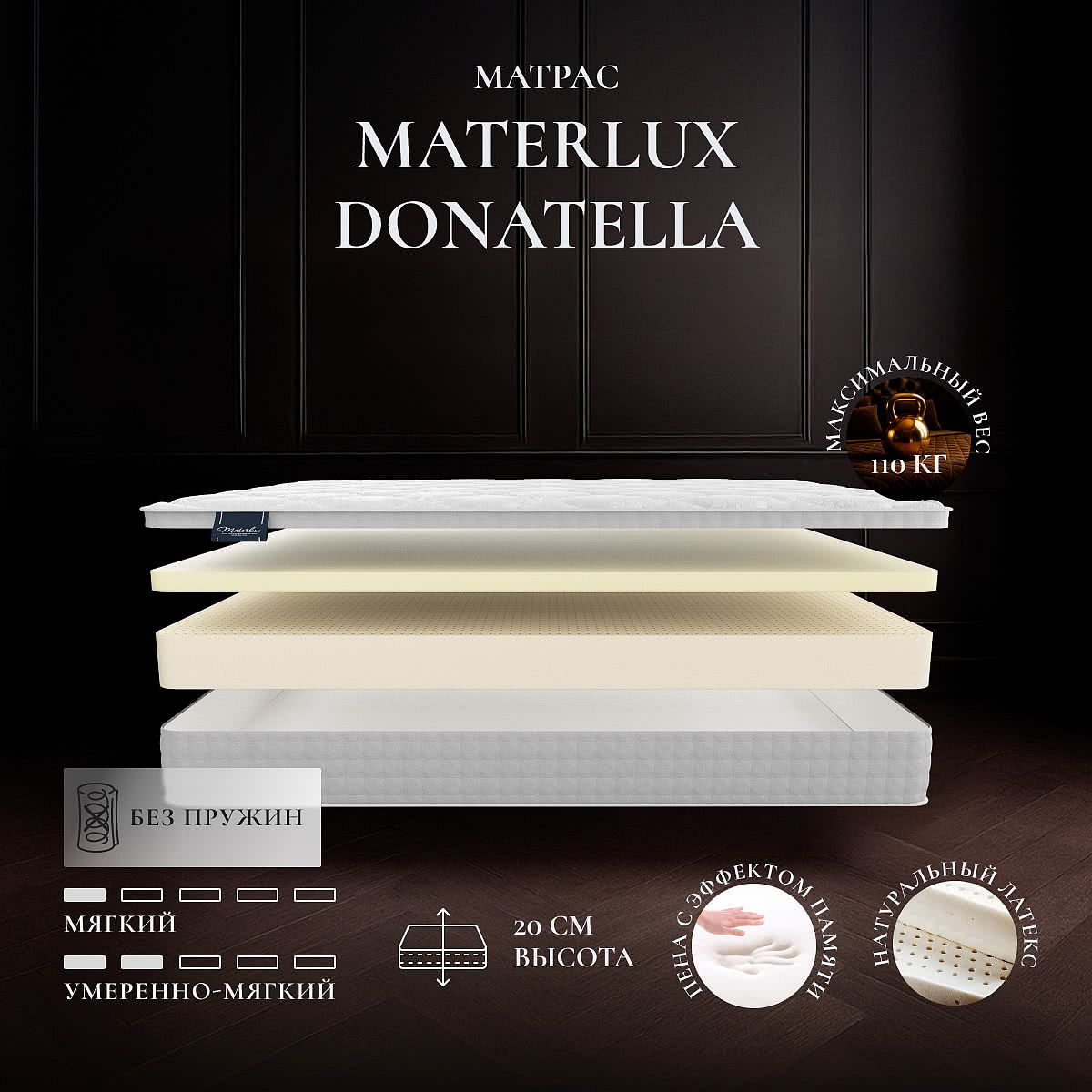Латекс — упруго-мягкий материал на основе вспененного сока дерева-каучуконоса. Придает поверхности матраса «Donatella» мягкость, увеличивает комфортность.