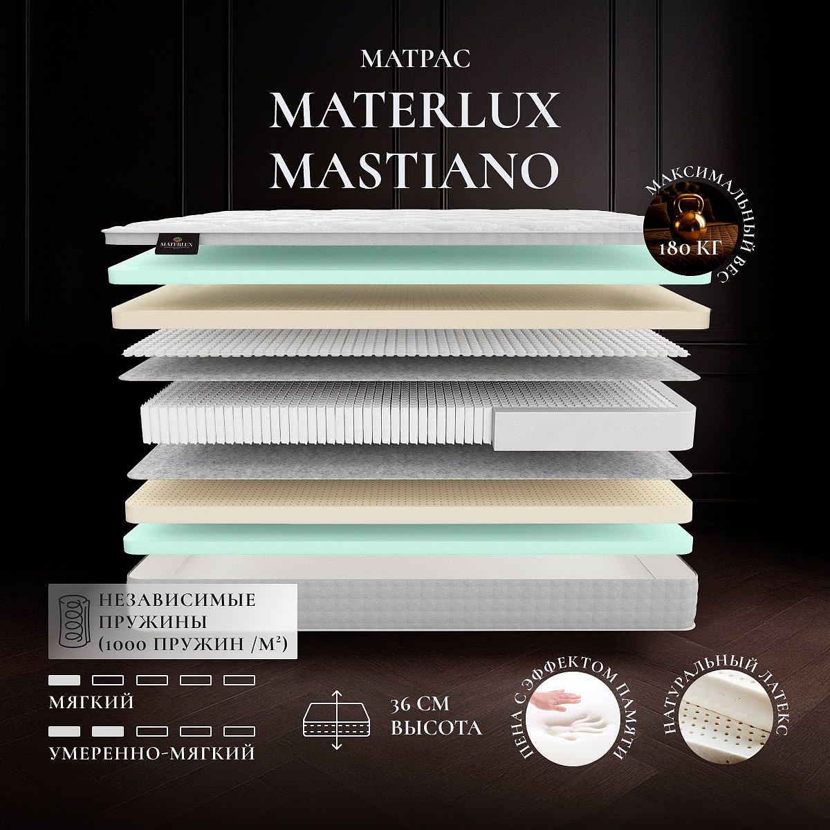 Матрас Mastiano относится к высоким матрасам. Перед покупкой убедитесь, что он подойдет к вашей кровати.