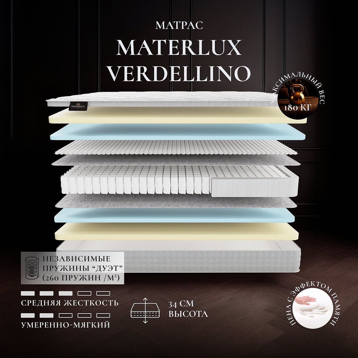 Преимущество матраса Verdellino — он имеет 2 различные по жесткости стороны: средне-мягкую и средне-жесткую.