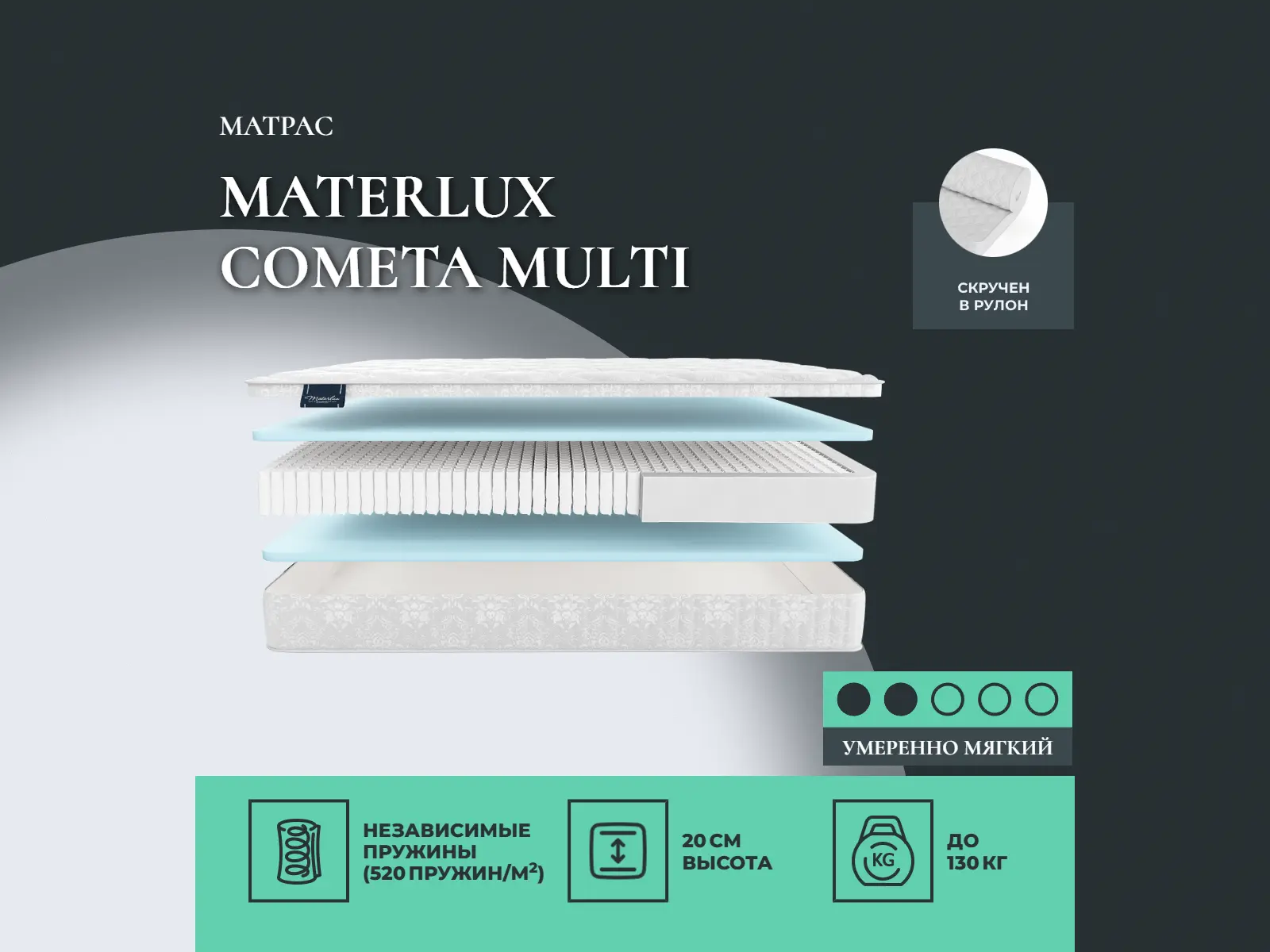 Средне-мягкий матрас «Materlux Cometa Multi» — для истинного ценителя комфорта. Такой вариант отлично подходит людям с небольшим весом.