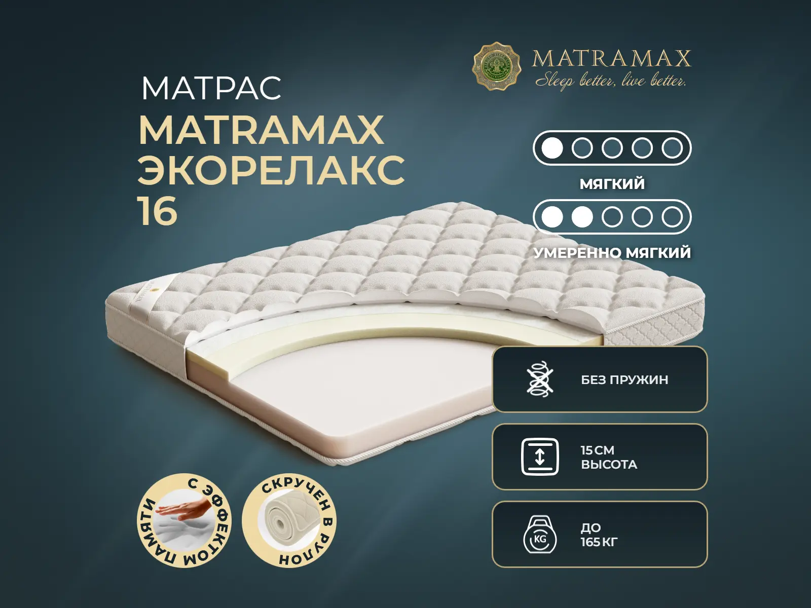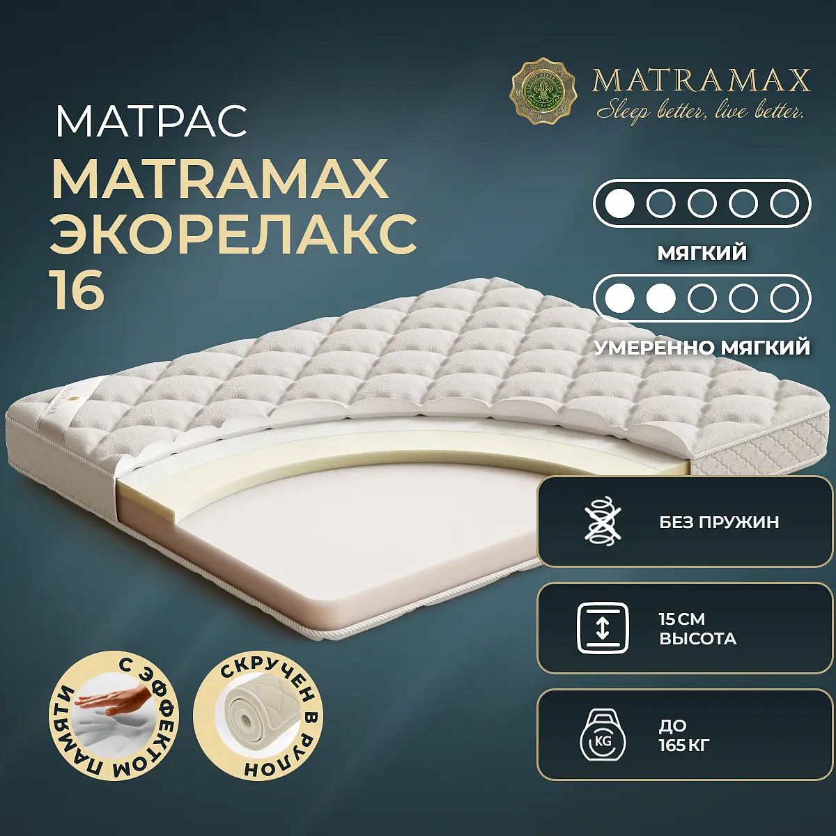 Матрас Экорелакс 16 выполнен из прочных материалов, за счет чего выдержит значительные нагрузки.