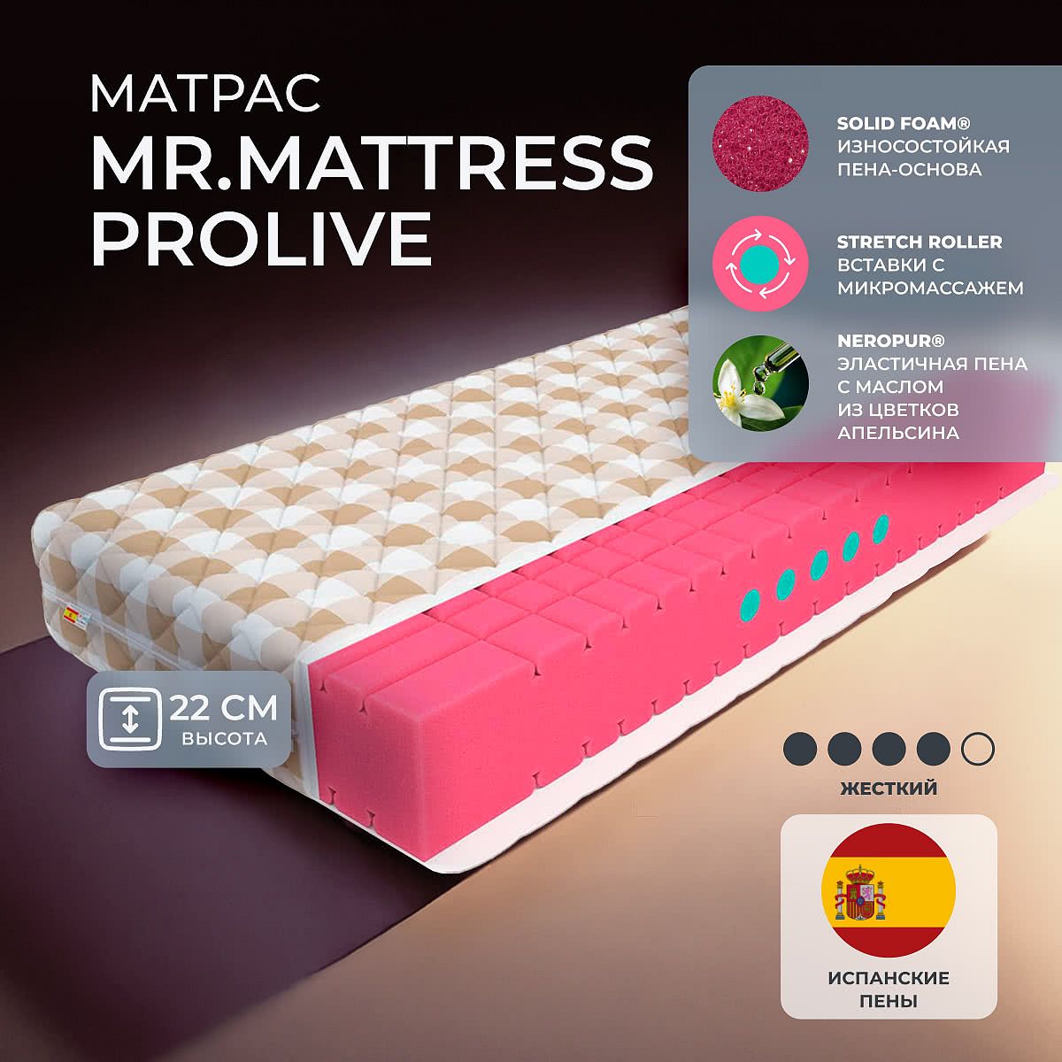Матрас высокой жесткости «Mr.Mattress ProLive» — оптимальный выбор для уверенной поддержки позвоночника. Именно такие модели обычно рекомендуют подросткам, спортсменам или людям с проблемами позвоночника.