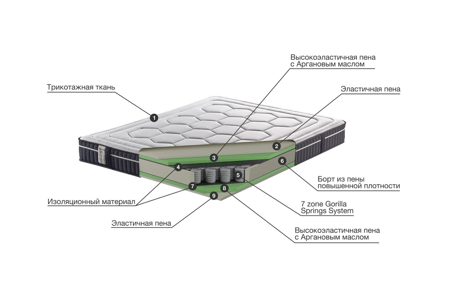 7-зонный блок независимых пружин Gorilla Pocket Spring System