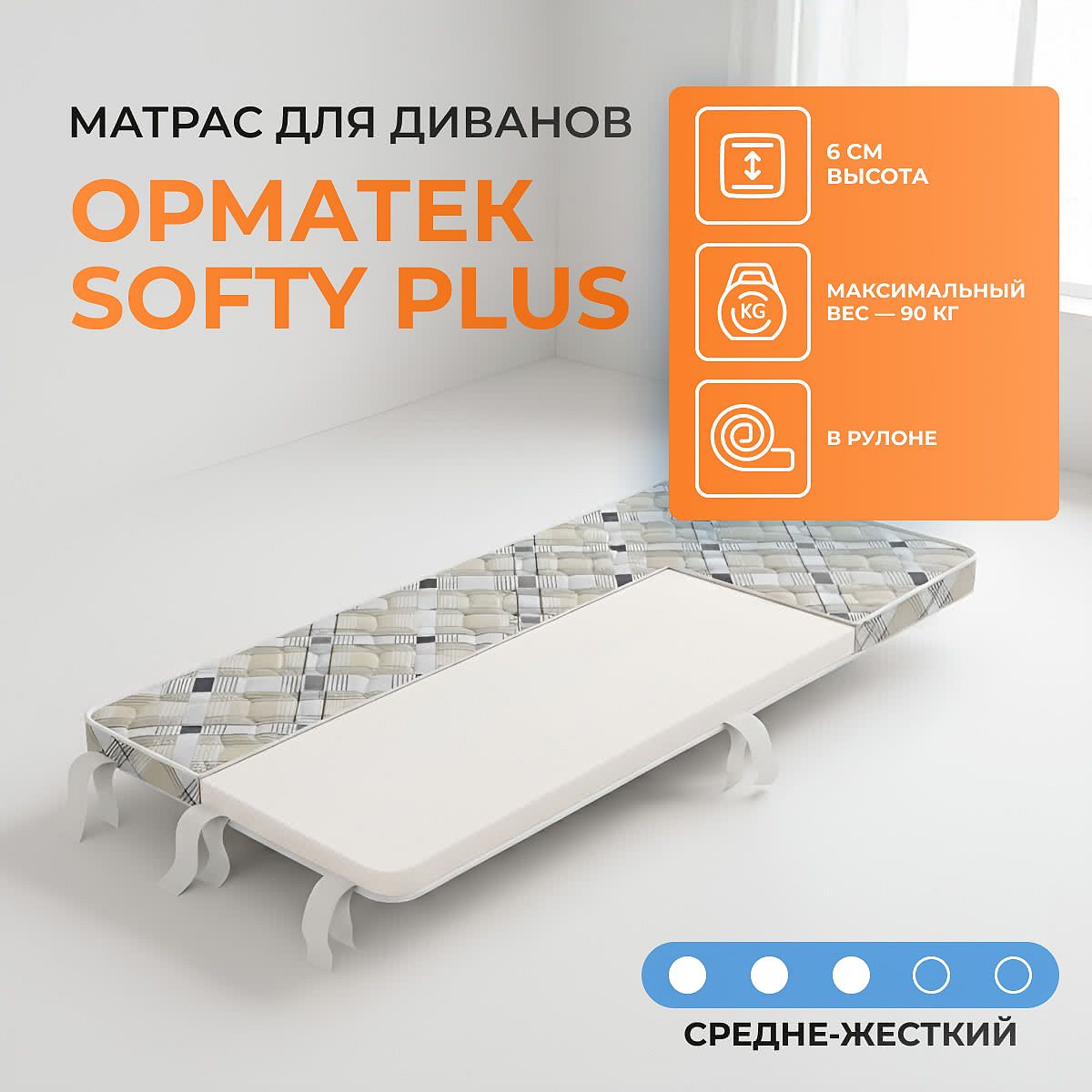 Матрас «Орматек Softy Plus» — средней жесткости, которая комфортна большинству людей среднего телосложения. Это — универсальный выбор и детям, и взрослым, и пожилым людям.