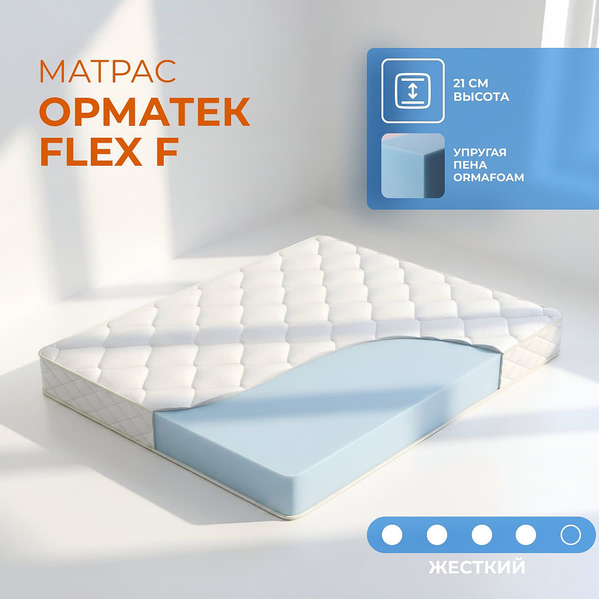 Матрас высокой жесткости «Орматек Flex F» — оптимальный выбор для уверенной поддержки позвоночника. Именно такие модели обычно рекомендуют подросткам, спортсменам или людям с проблемами позвоночника.