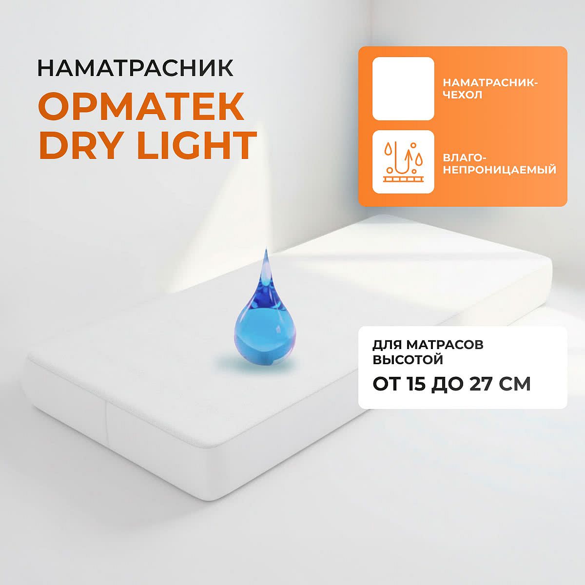 Благодаря особому покрытию наматрасник «Dry Light» надежно защитит вашу постель от ненужной влаги.