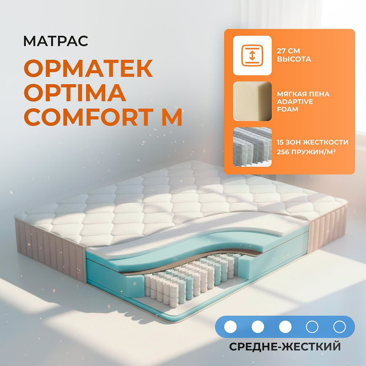 Матрас «Орматек Optima Comfort M» — средней жесткости, которая комфортна большинству людей среднего телосложения. Это — универсальный вариант и детям, и взрослым, и пожилым людям.