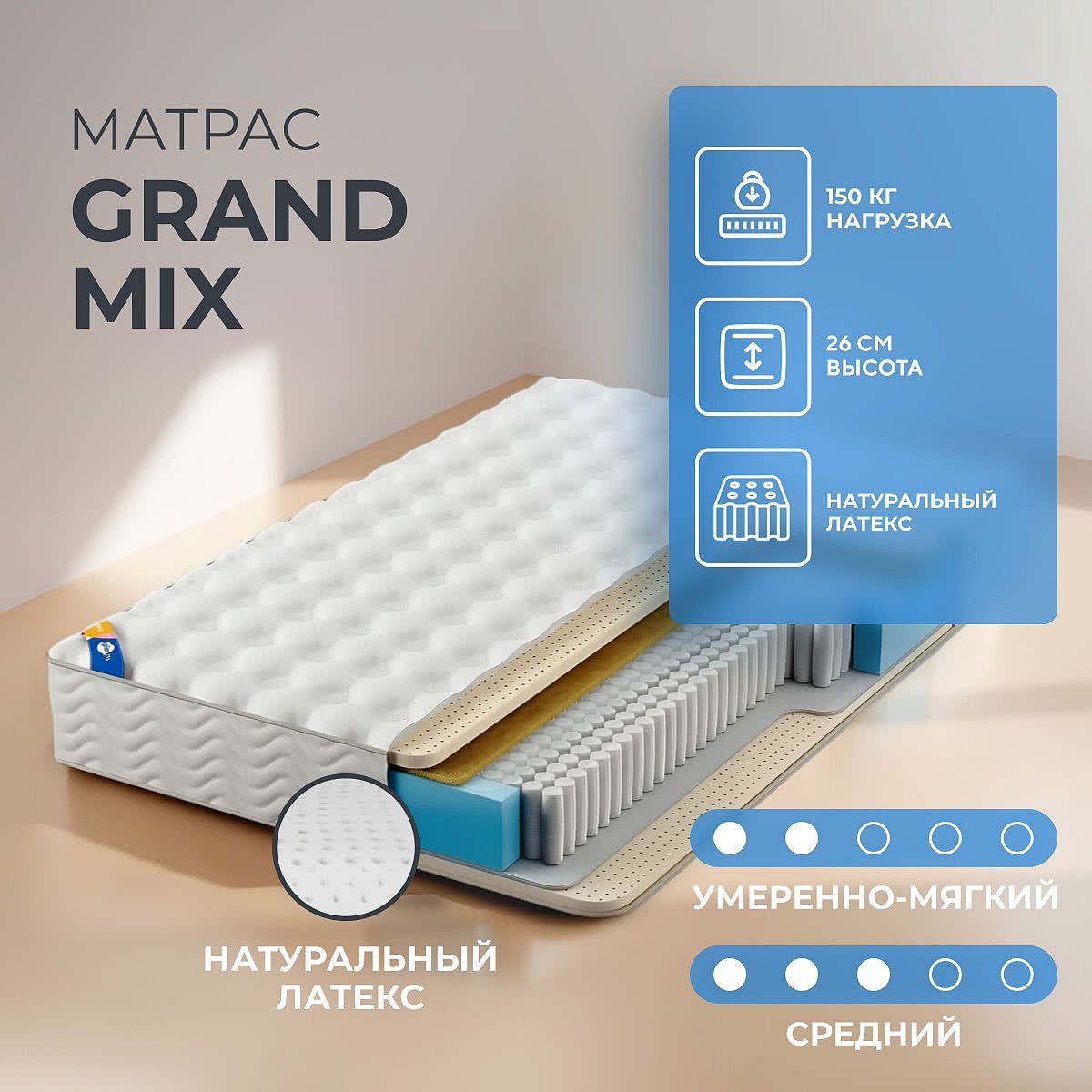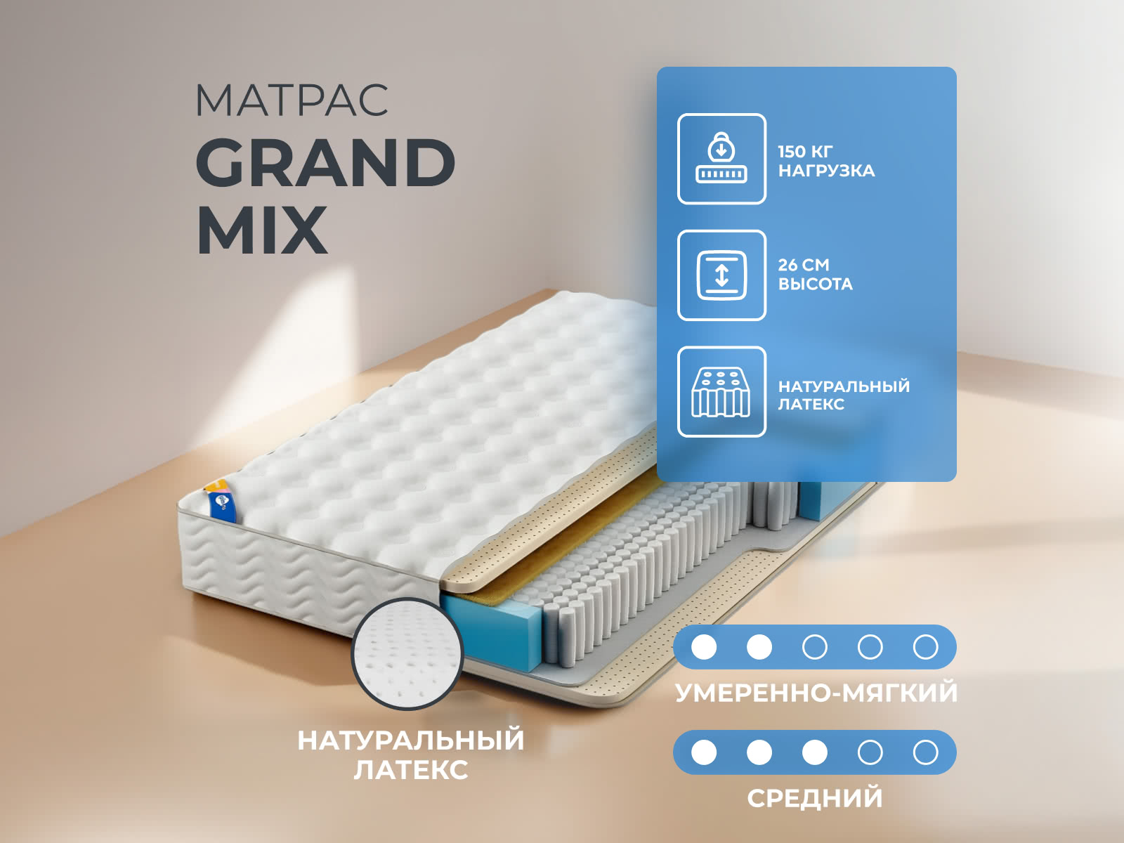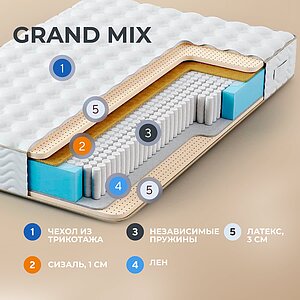 Преимущество матраса GrandMix — он имеет 2 различные по жесткости стороны: средне-жесткую и средне-мягкую.