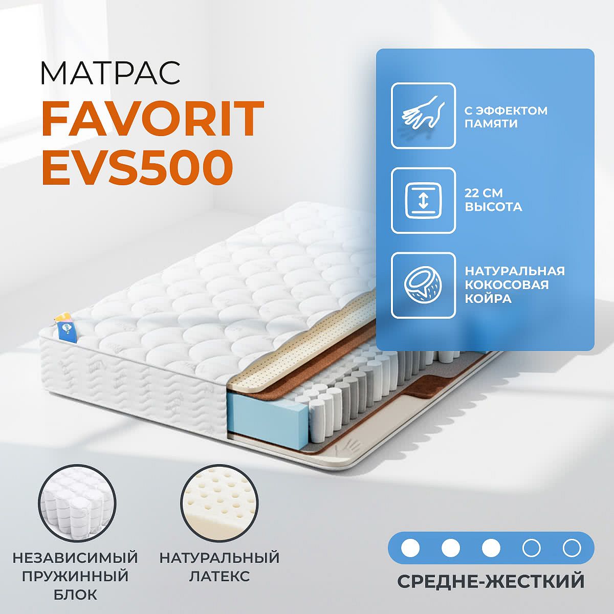 Матрас Favorit EVS500 имеет среднюю толщину и подходит к большинству типов кроватей.