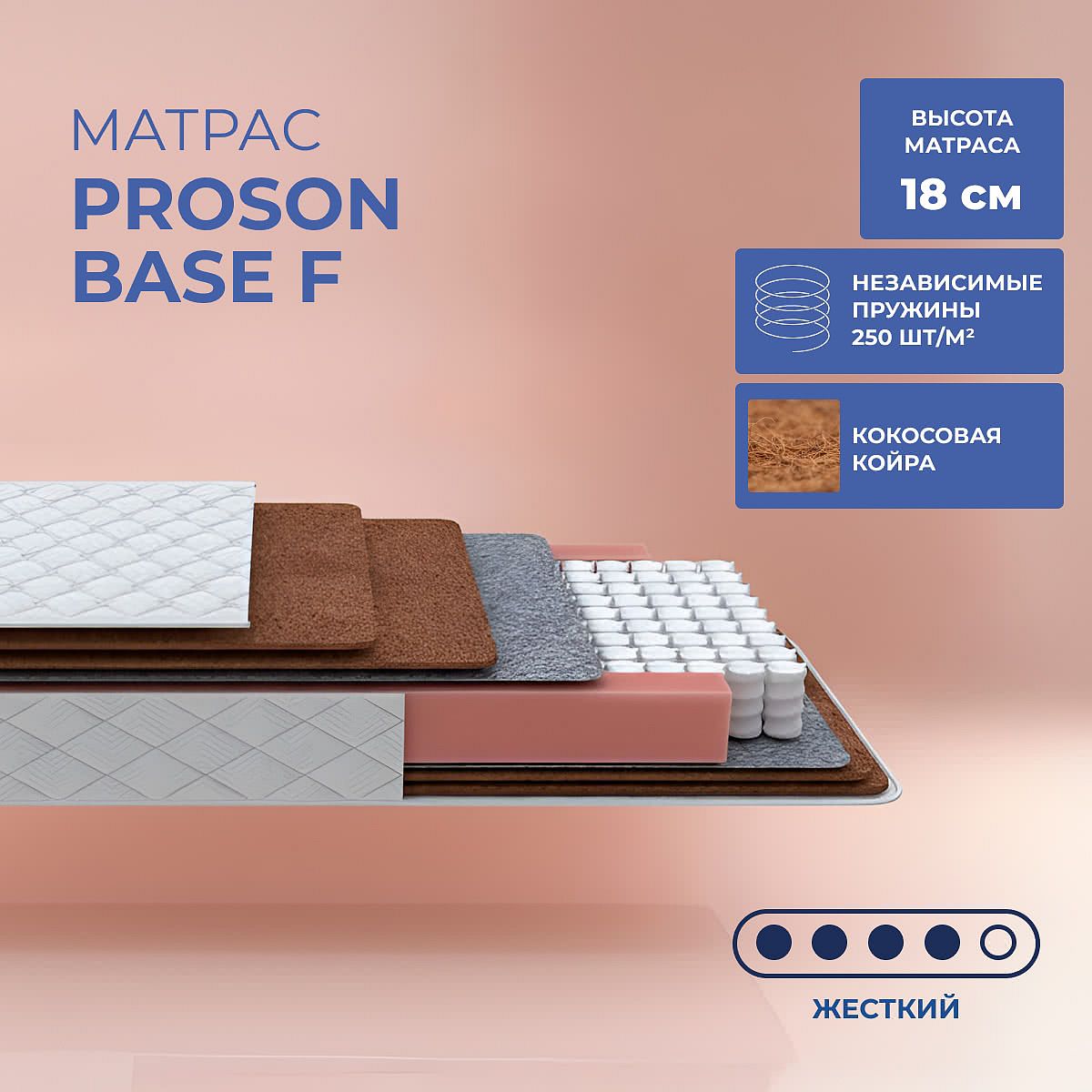 Кокос — натуральный материал, койра отлично дышит, придает матрасу «Base F» жесткость и упругость.