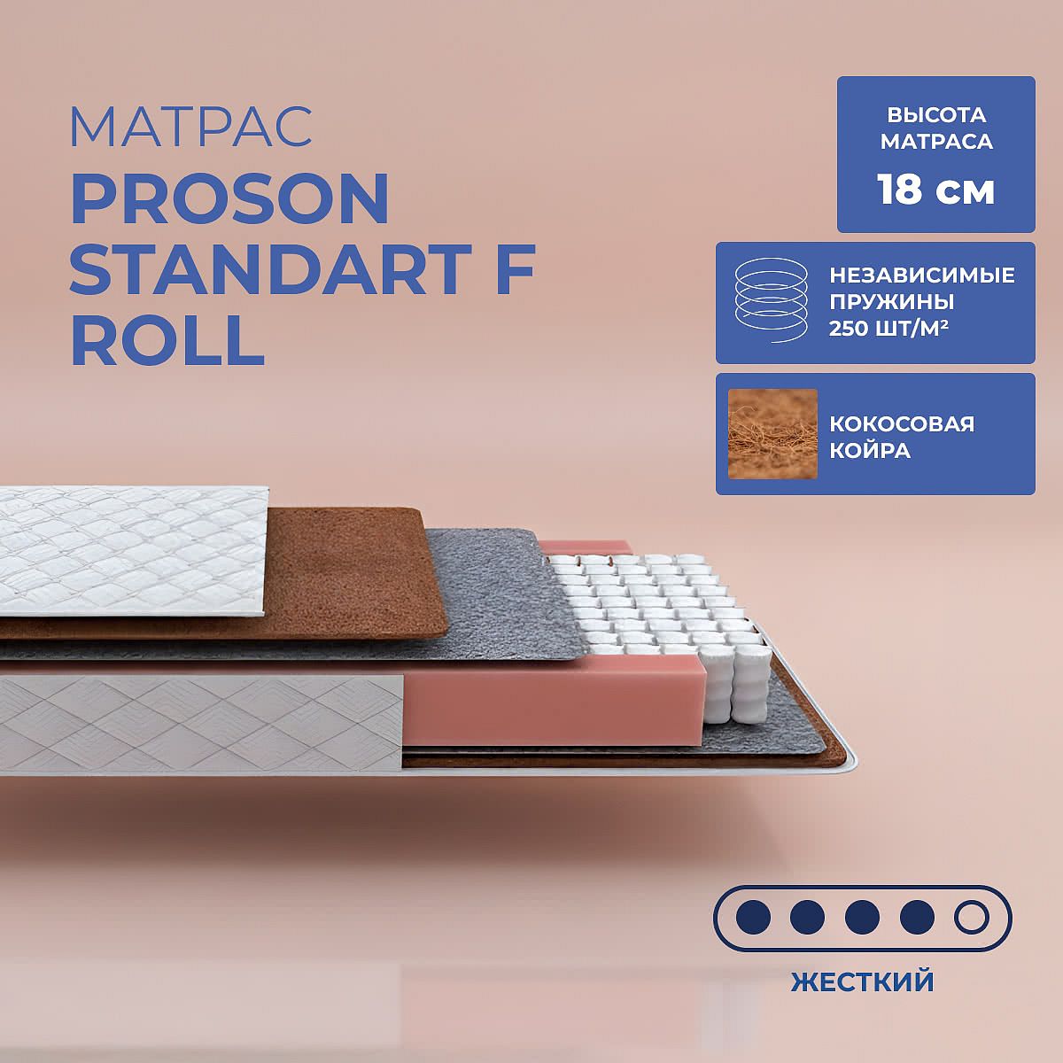 Матрас высокой жесткости «ProSon Standart F Roll» — оптимальный выбор для уверенной поддержки позвоночника. Именно такие модели обычно рекомендуют подросткам, спортсменам или людям с проблемами позвоночника.