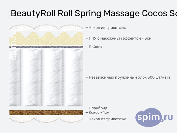 Матрас BeautyRoll Roll Spring Massage Cocos S600