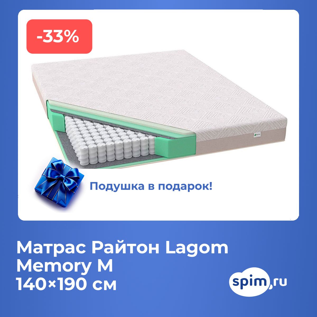 Сегодня матрас Райтон Lagom Memory M дешевле на 33%! Закажите прямо сейчас!