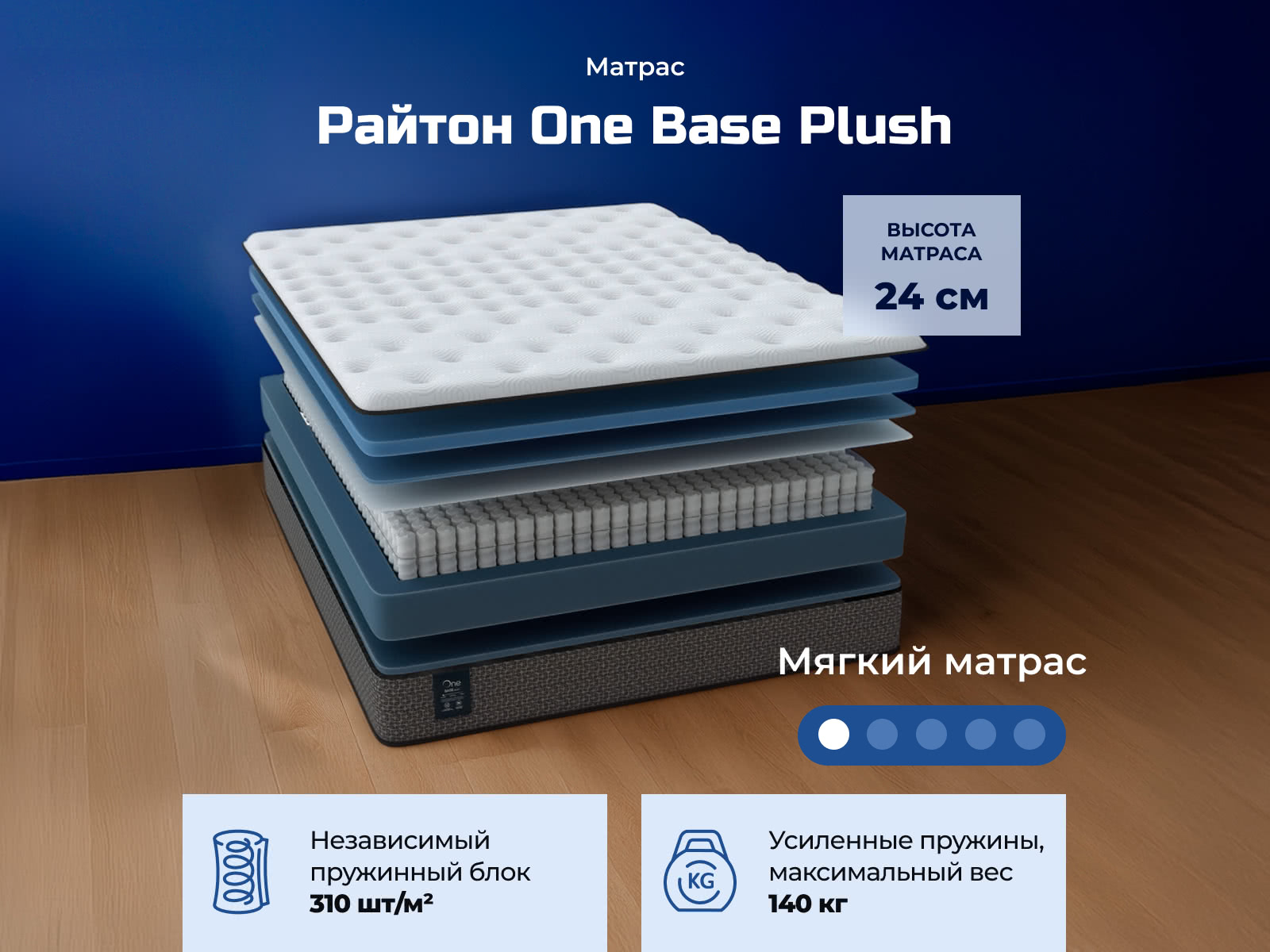 Мягкий матрас «Райтон One Base Plush» отлично подойдет человеку с небольшим весом, предпочитающему высокий уровень комфорта.