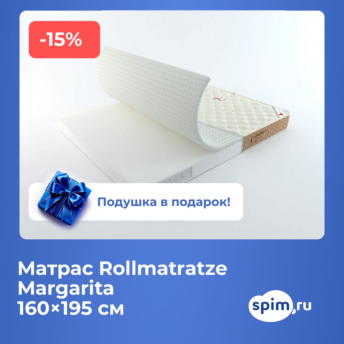 Двуспальный матрас Rollmatratze Margarita 160х195 подойдет для кроватей с размерами спального места, обозначенными как 160x195 см, 1600х1950 мм, 195х160 см, 1950х1600 мм (ширина 160 см, длина 195 см).