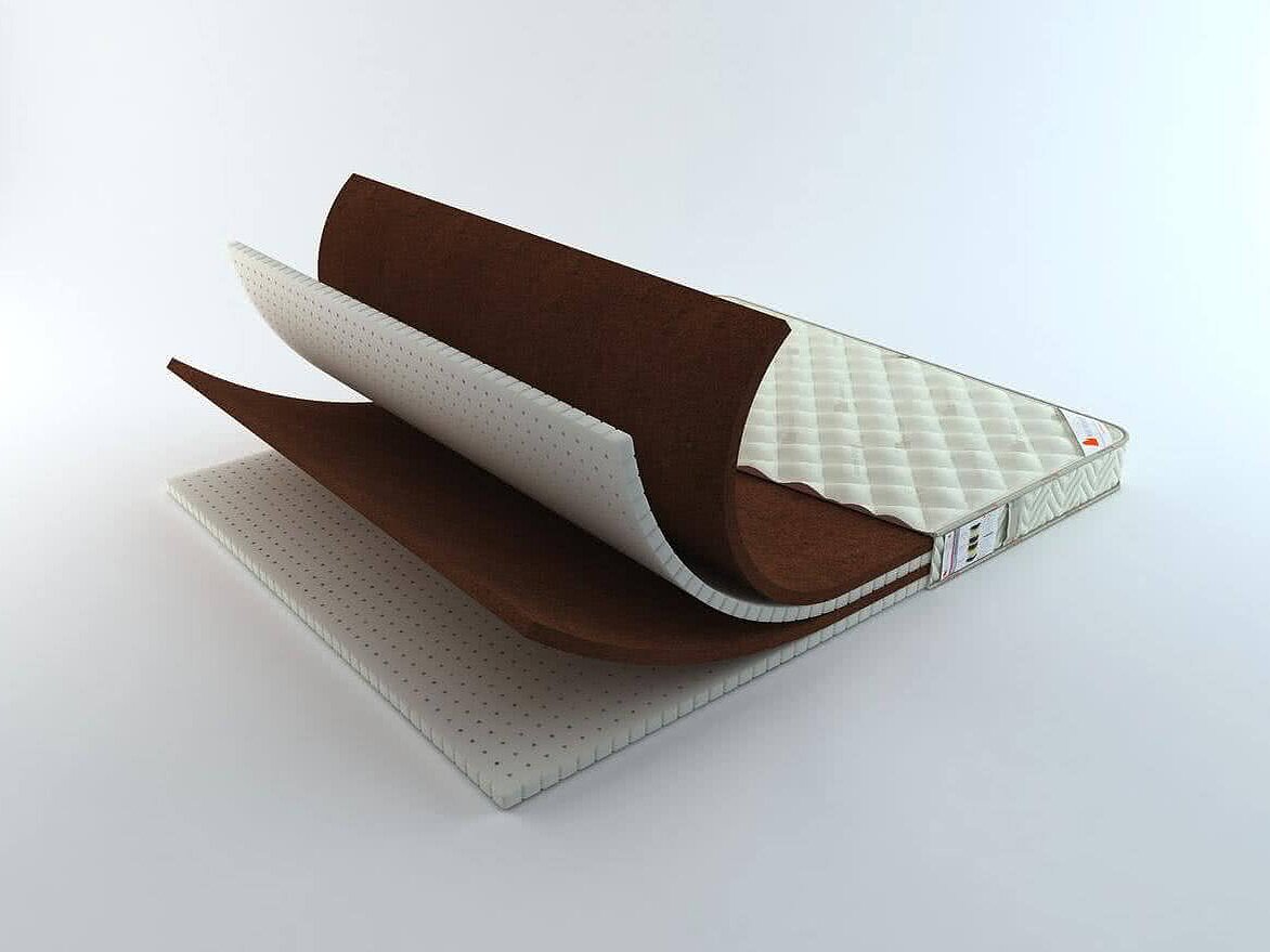 Жесткий беспружинный матрас со стороны кокоса, умеренно-жесткий со стороны натурального латекса.Состав матраса: