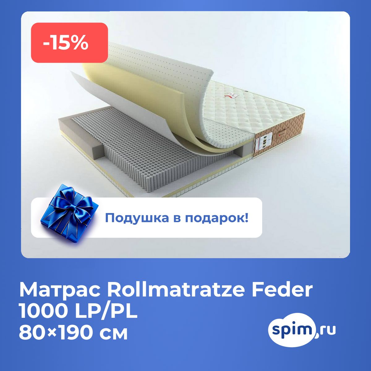 Размер матраса Feder 1000 LP/PL: 80х190 см
