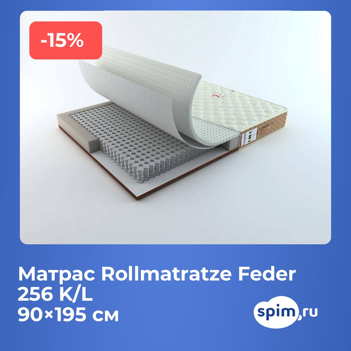 Односпальный матрас Rollmatratze Feder 256 K/L 90х195 подойдет для кроватей с размерами спального места, обозначенными как 90x195 см, 900х1950 мм, 195х90 см, 1950х900 мм (ширина 90 см, длина 195 см).