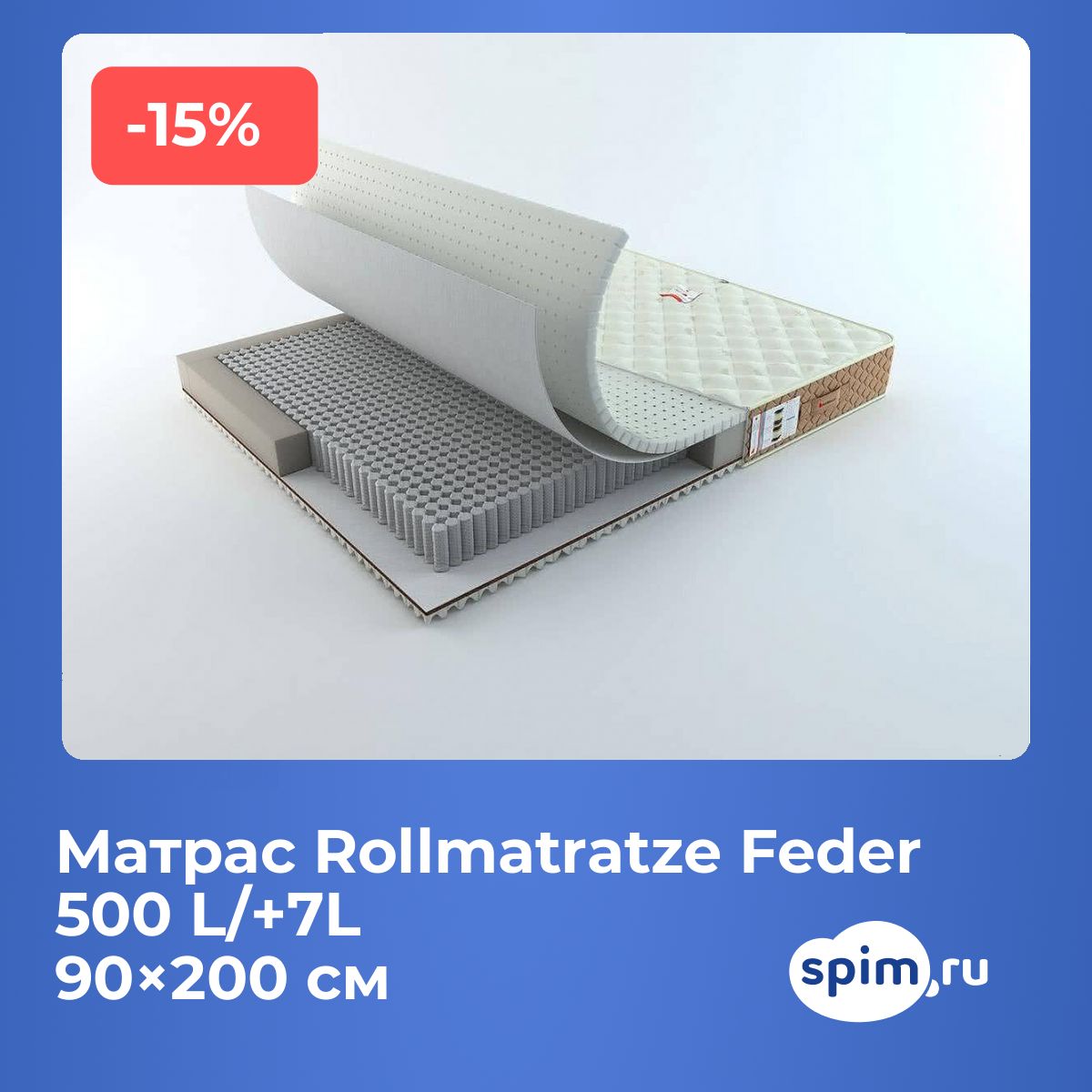 Односпальный матрас Rollmatratze Feder 500 L/+7L 90х200 подойдет для кроватей с размерами спального места, обозначенными как 90x200 см, 900х2000 мм, 200х90 см, 2000х900 мм (ширина 90 см, длина 200 см).