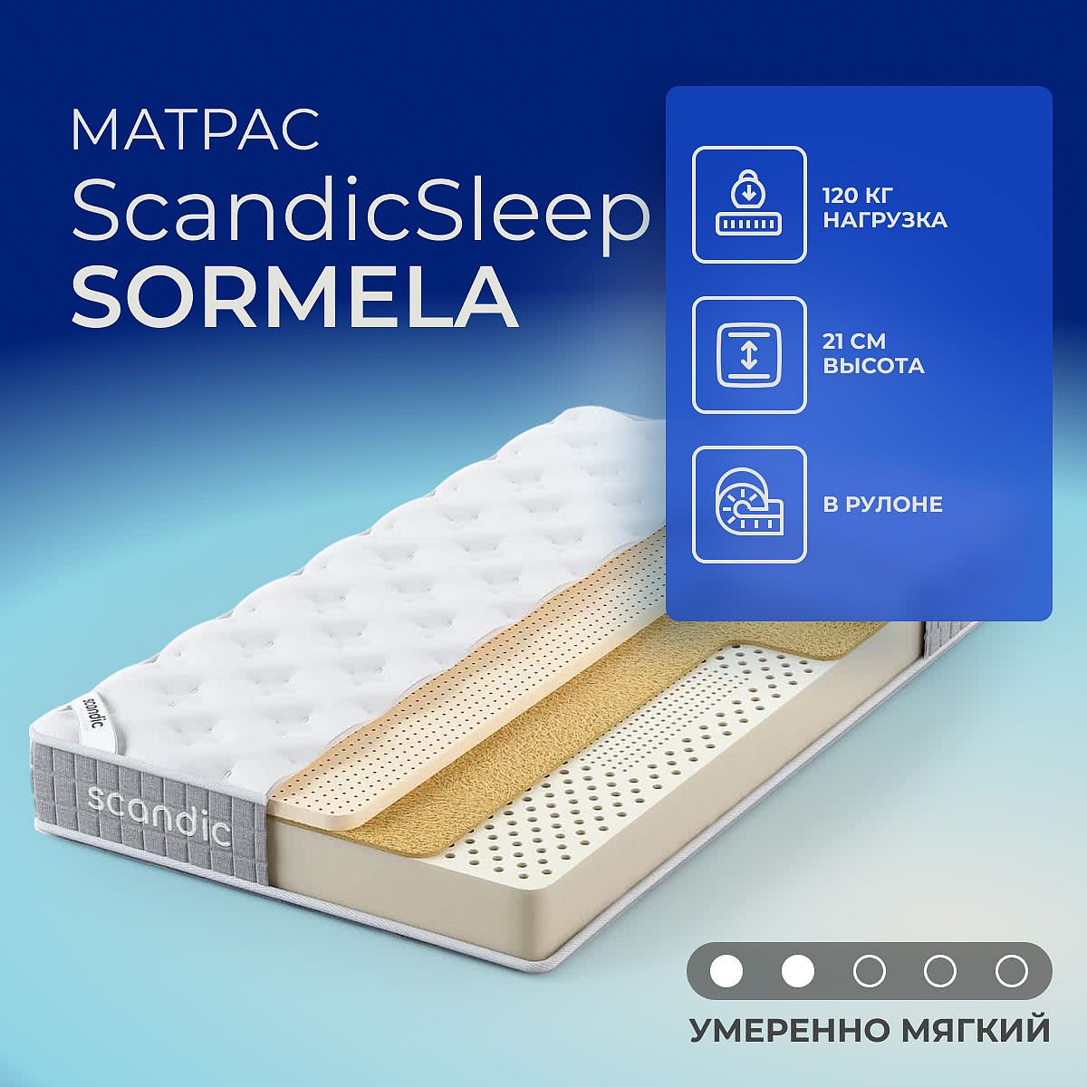 Средне-мягкий матрас «ScandicSleep Sormela» просто создан для настоящего ценителя комфорта. Такая модель хорошо подходит людям с небольшим весом.