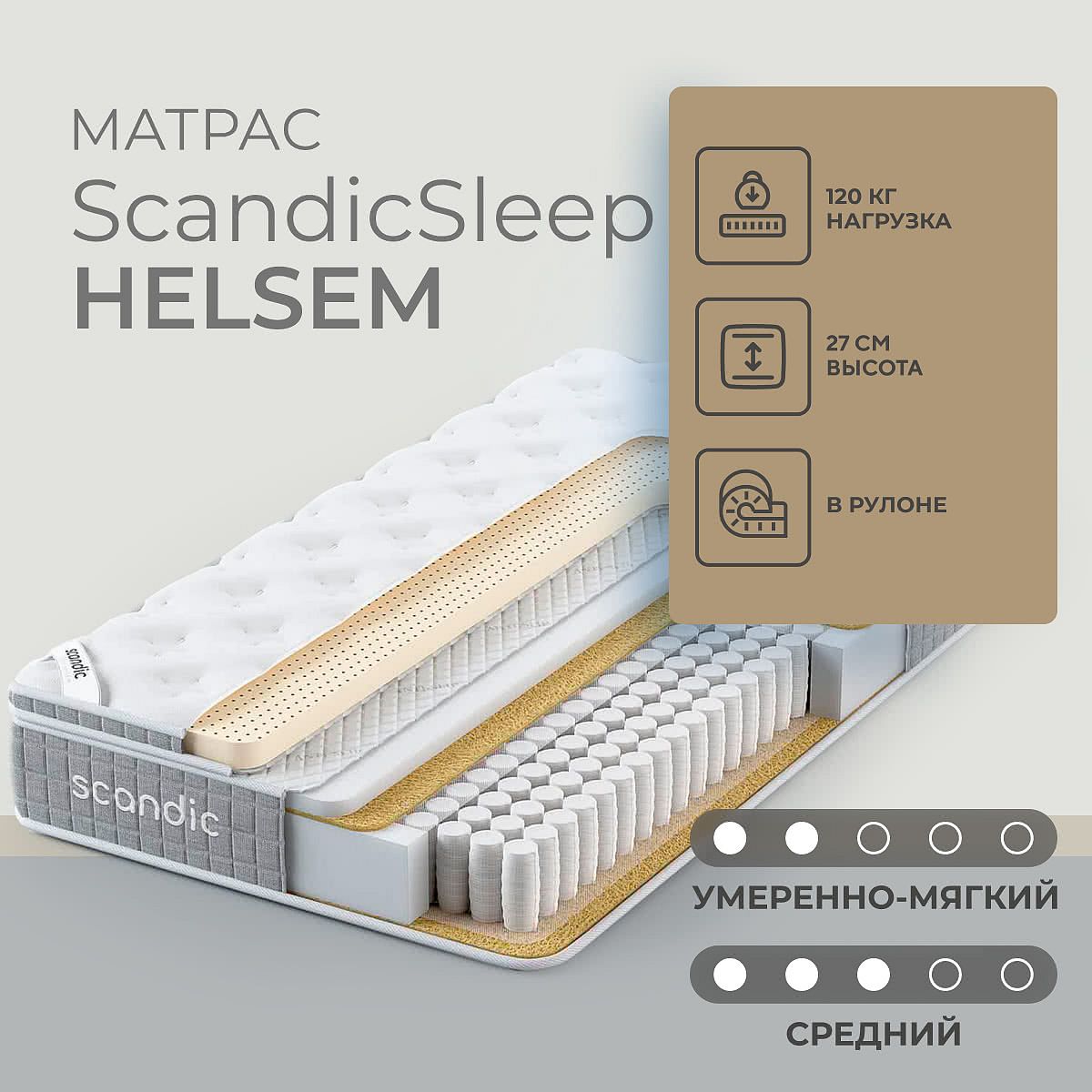 Что такое спальная система?Спальная система ScandicSleep состоит из 2х элементов: матраса-основы и топпера. Матрас-основа обеспечивает поддержку тела, а топпер придает комфорт поверхности.Матрас – основа на независимых пружинах S500Основа этой системы – разносторонний матрас на независимых пружинах S500.Состав: