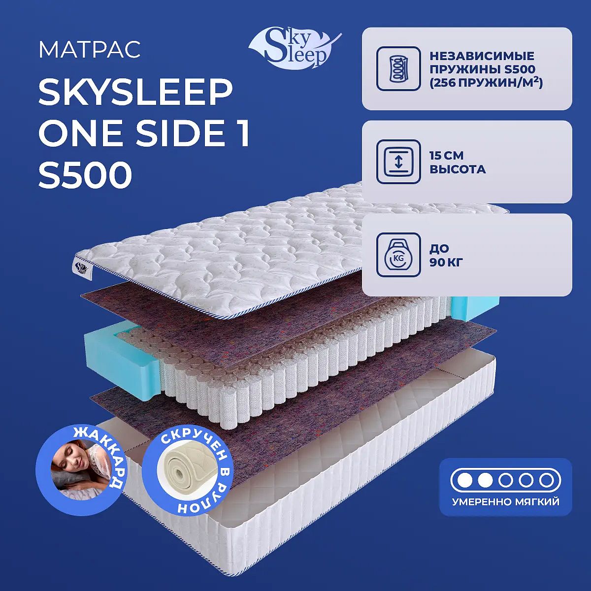 Средне-мягкий матрас «SkySleep One Side 1 S500» — для настоящего ценителя комфорта. Такая модель отлично подходит людям с небольшим весом.