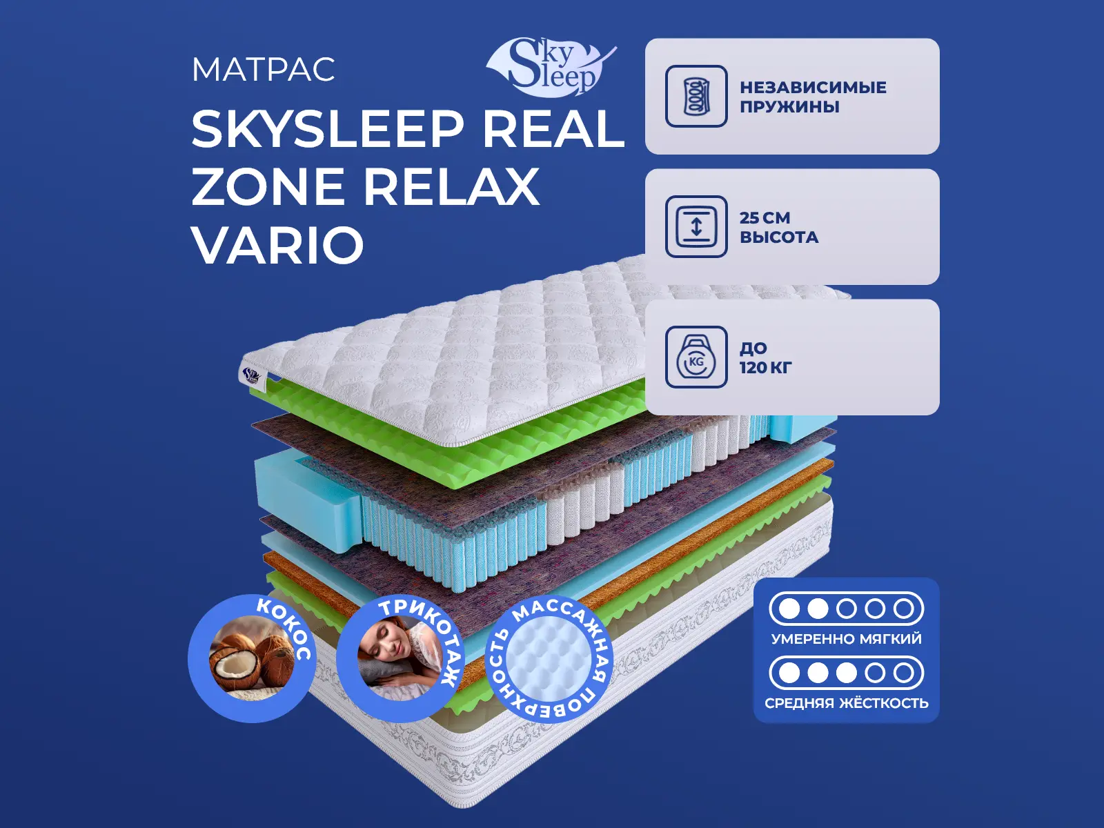 Матрас Skysleep Real Zone Relax Vario 160х200 смАртикул С-98871