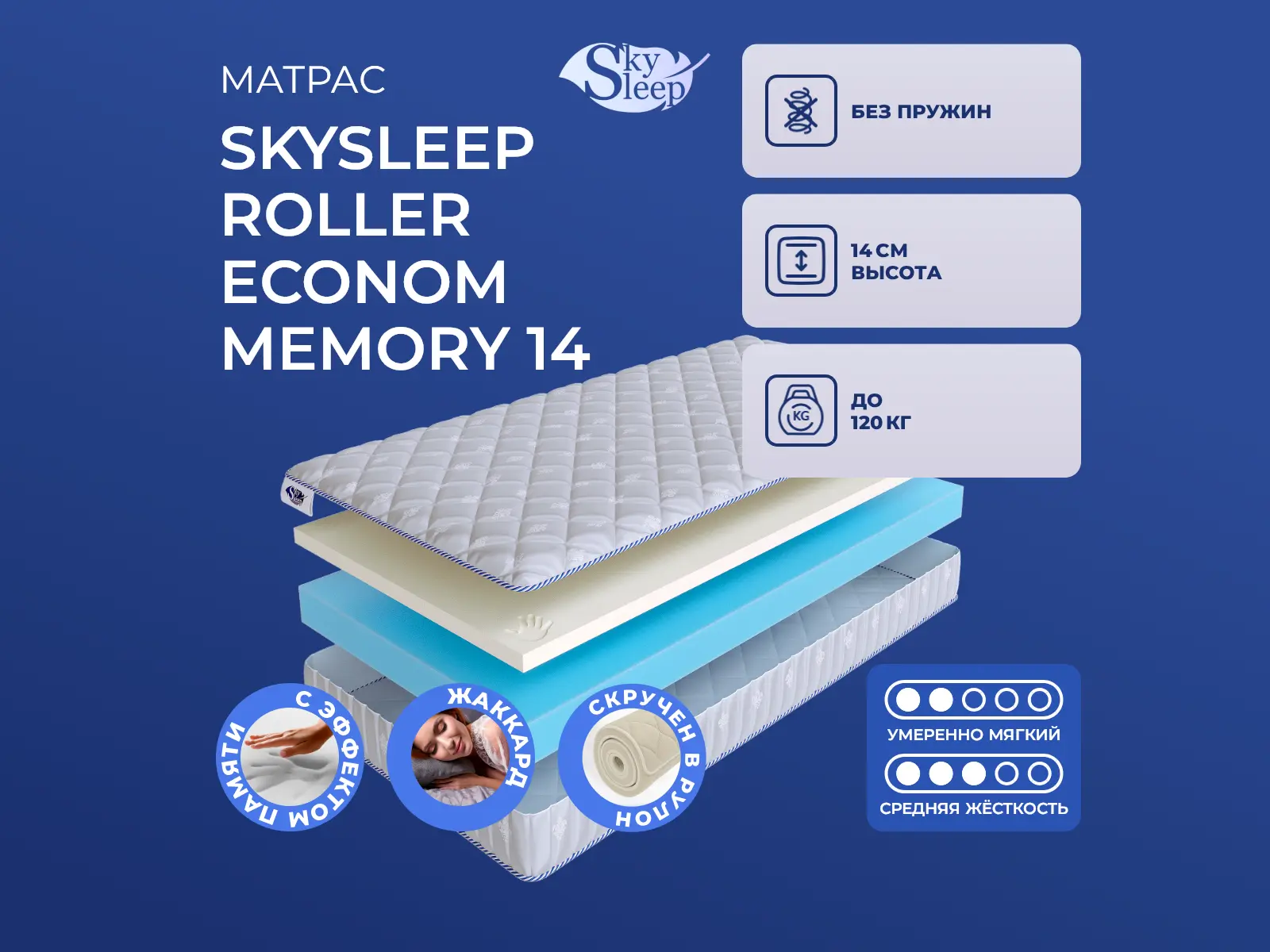 Матрас SkySleep Roller Econom Memory 14 200х200 смАртикул С-77165