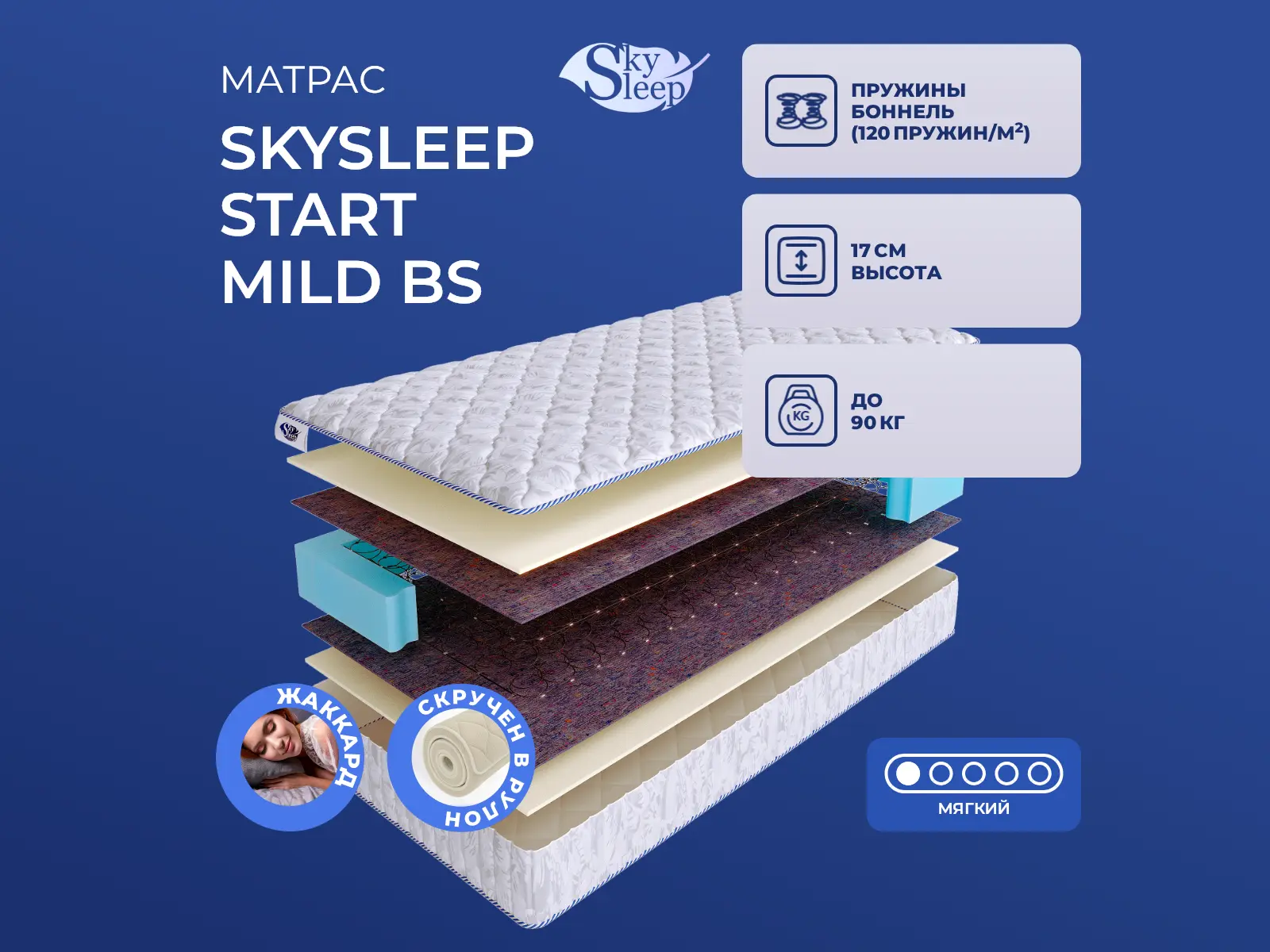Мягкий матрас «SkySleep Start Mild BS» отлично подойдет человеку с небольшим весом, предпочитающему высокий уровень комфорта.