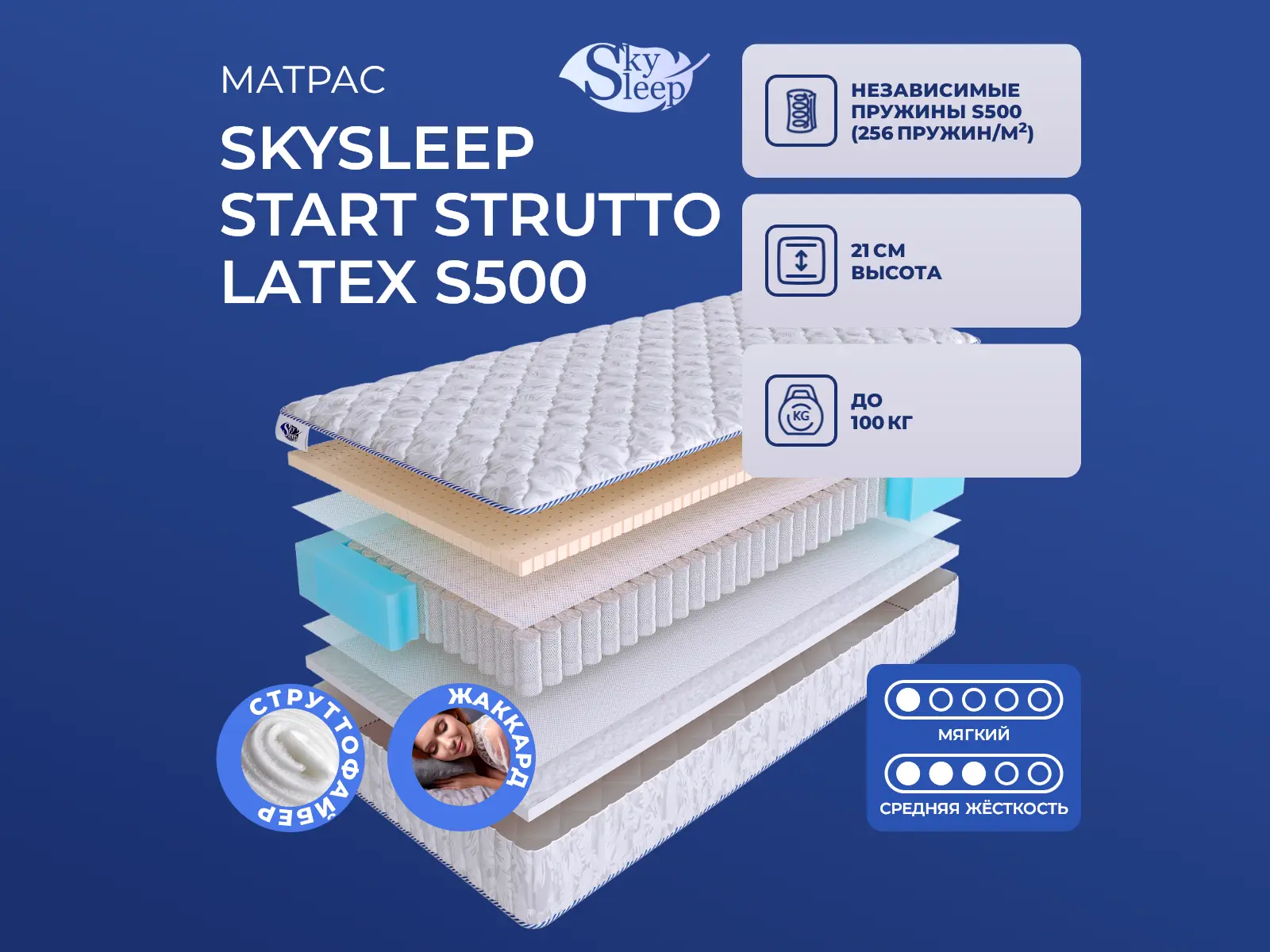 Матрас SkySleep Start Strutto Latex S500 140х200 смАртикул С-74325