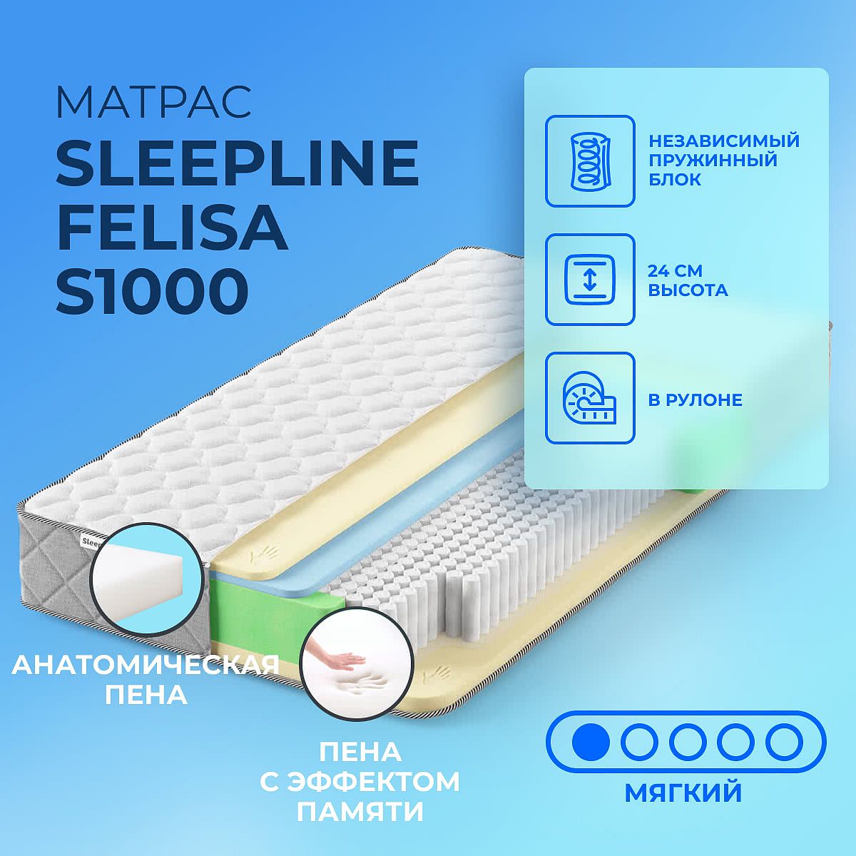 Мягкий матрас «Sleepline Felisa S1000» отлично подойдет человеку с небольшим весом, ценителю комфорта.