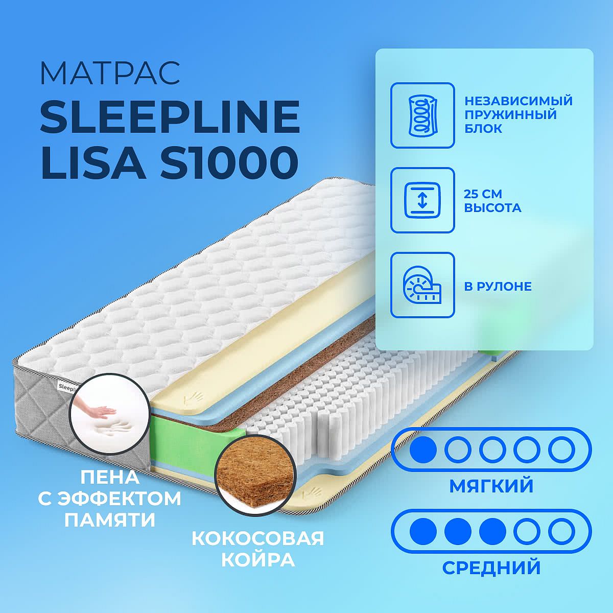 Матрас Sleepline Lisa S1000Артикул С-81708
