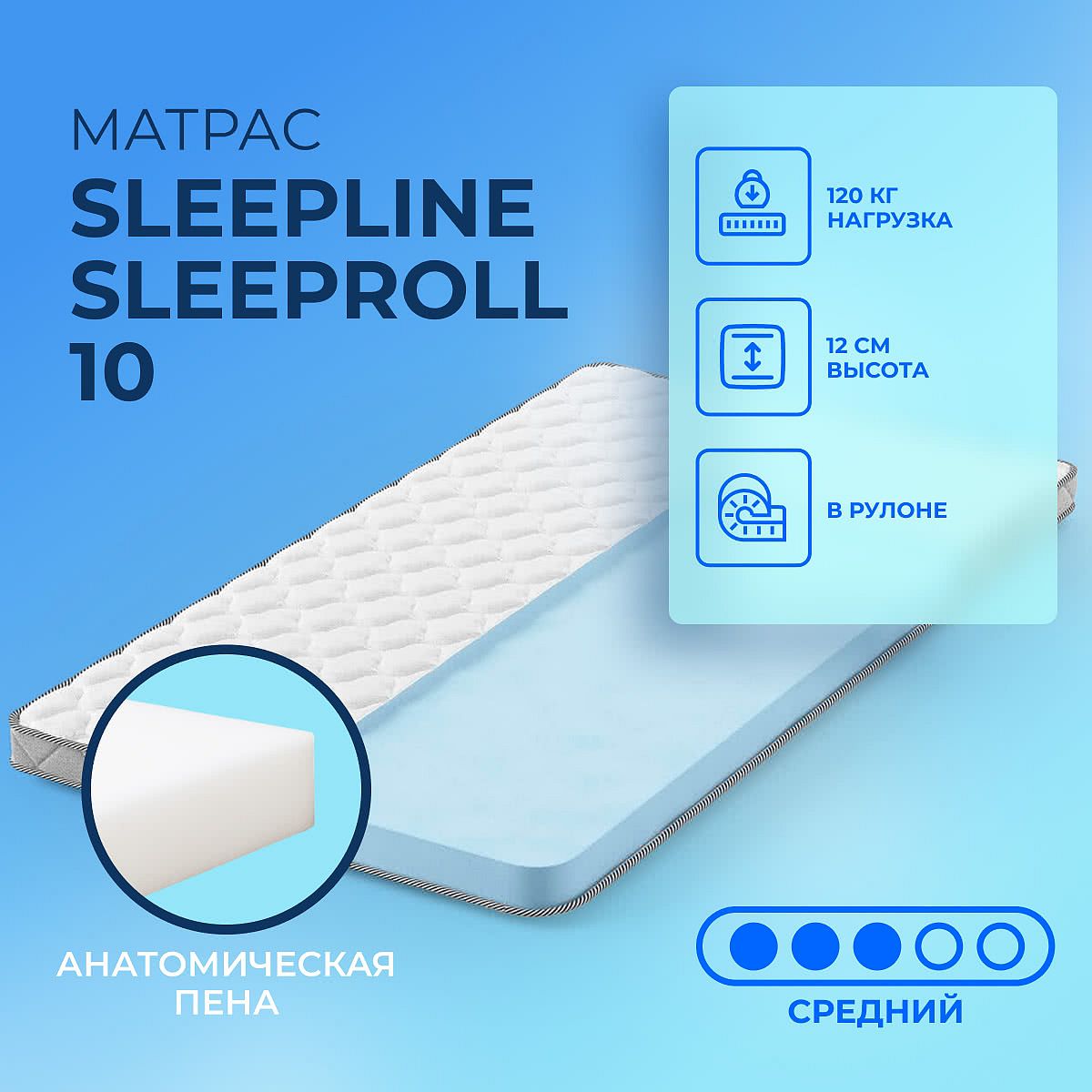 Матрас «Sleepline SleepRoll 10» — средней жесткости, которая комфортна большинству людей среднего телосложения. Это — оптимальный вариант и детям, и взрослым, и пожилым людям.