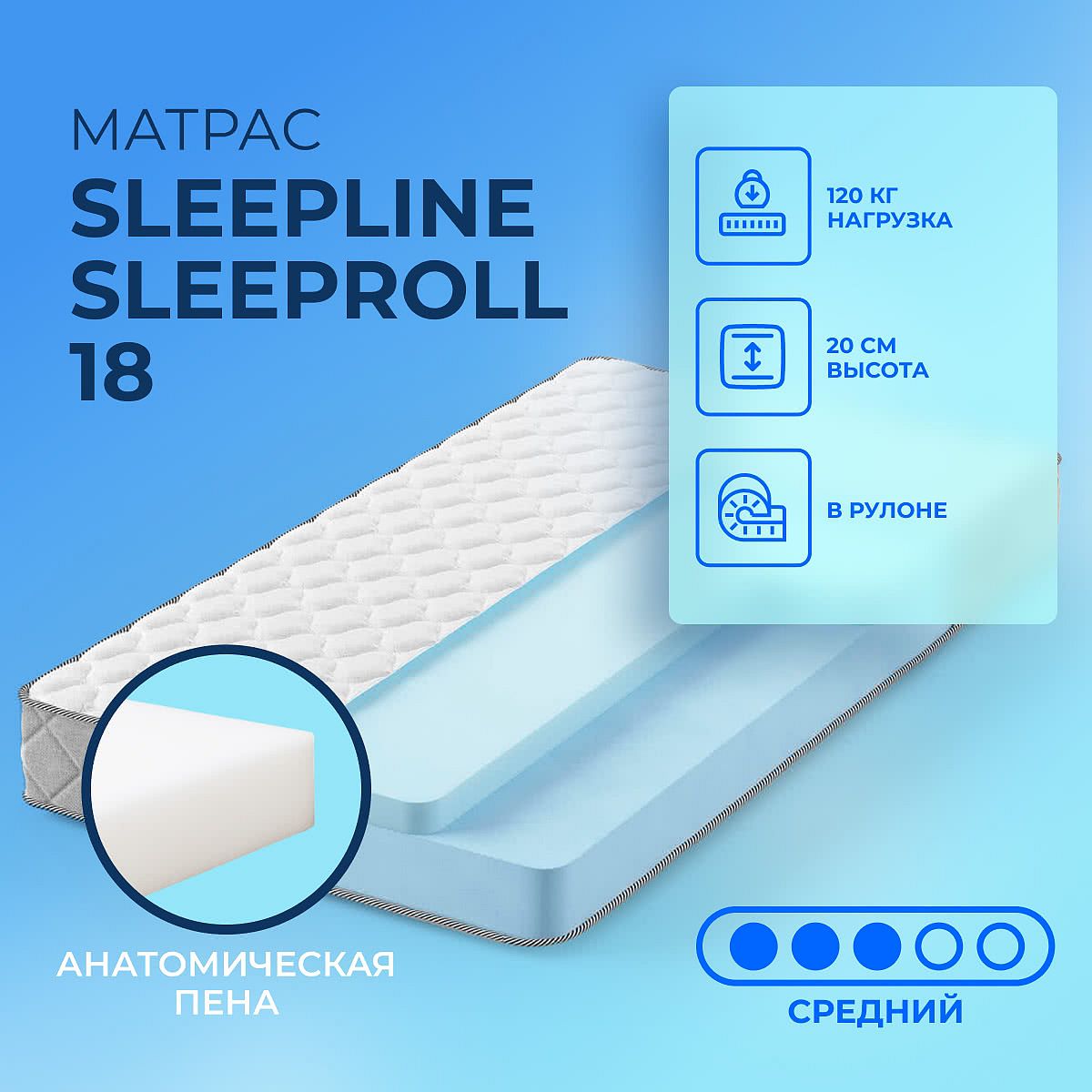 Матрас «Sleepline SleepRoll 18» — средней жесткости, которая подходит большинству людей среднего телосложения. Это — универсальный выбор и детям, и взрослым, и пожилым людям.