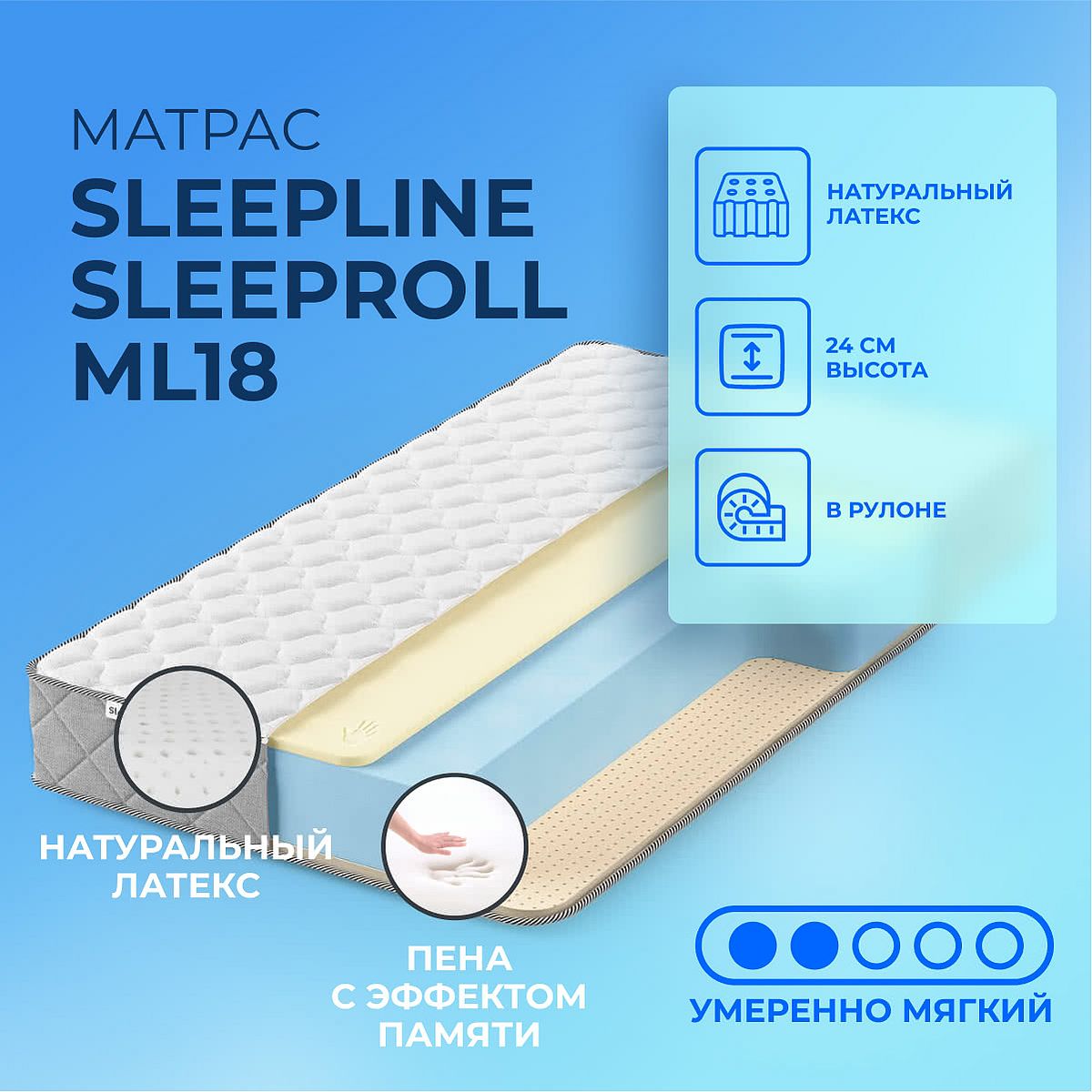 Средне-мягкий матрас «Sleepline SleepRoll ML18» — для истинного ценителя комфорта. Такой вариант отлично подходит людям с небольшим весом.