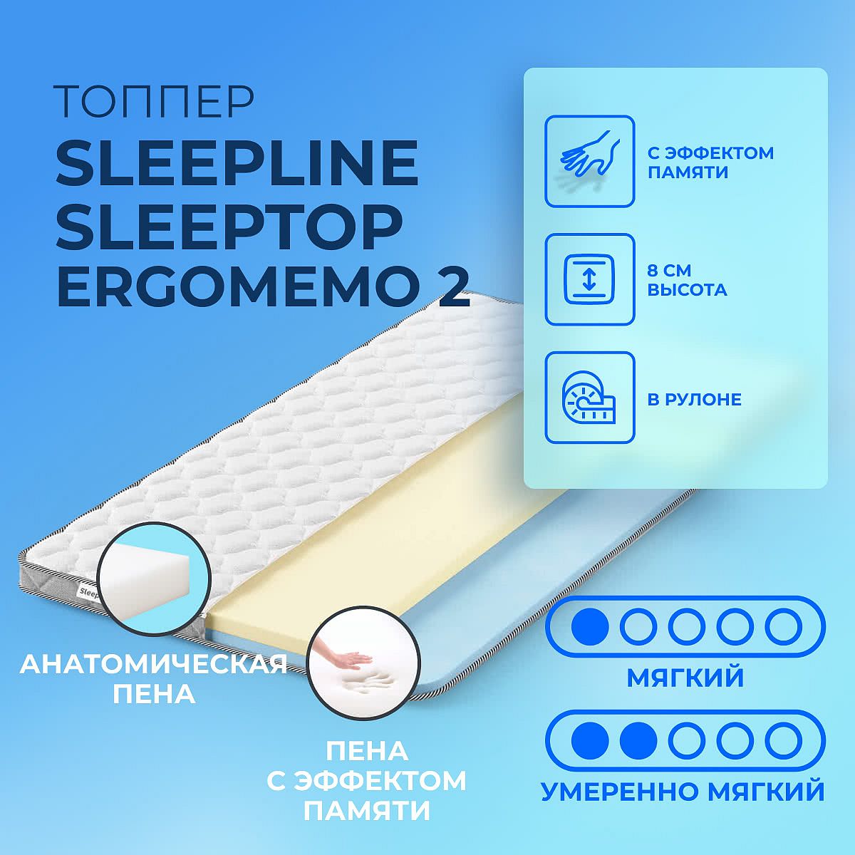 Топпер Sleepline SleepTop ErgoMemo 2 65х200 смАртикул С-81737
