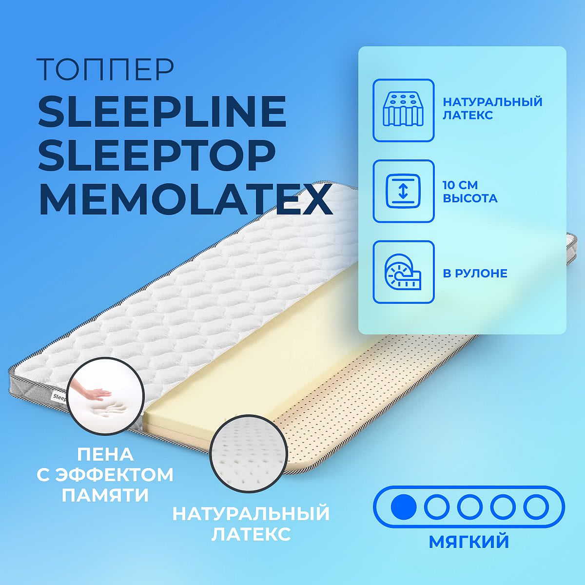 Мягкий матрас «Sleepline SleepTop MemoLatex» отлично подойдет человеку с небольшим весом, ценителю комфорта.