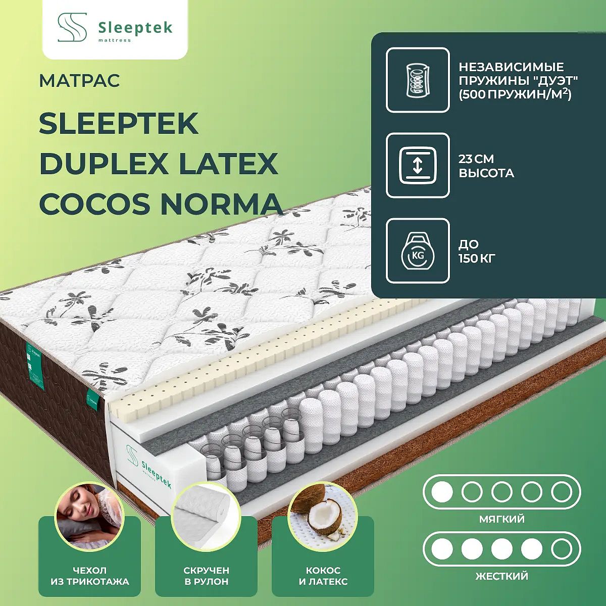 Матрас Sleeptek Duplex Latex Cocos Norma 65х200 смАртикул С-77970