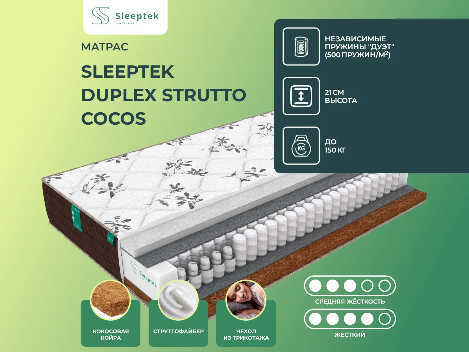 Матрас Sleeptek Duplex Strutto Cocos 125х130 смАртикул С-77976