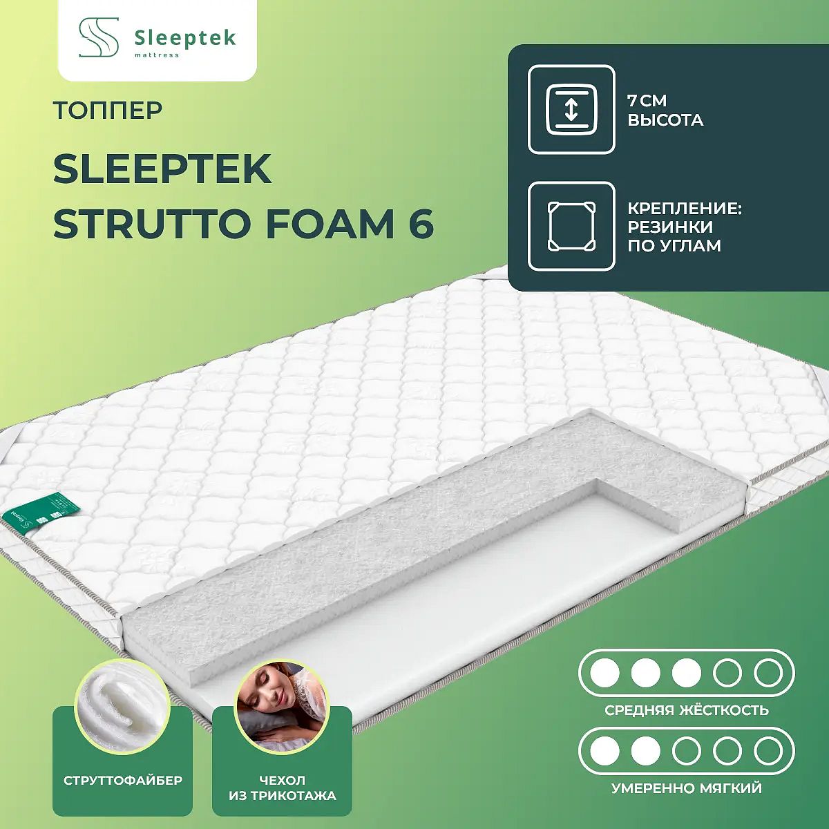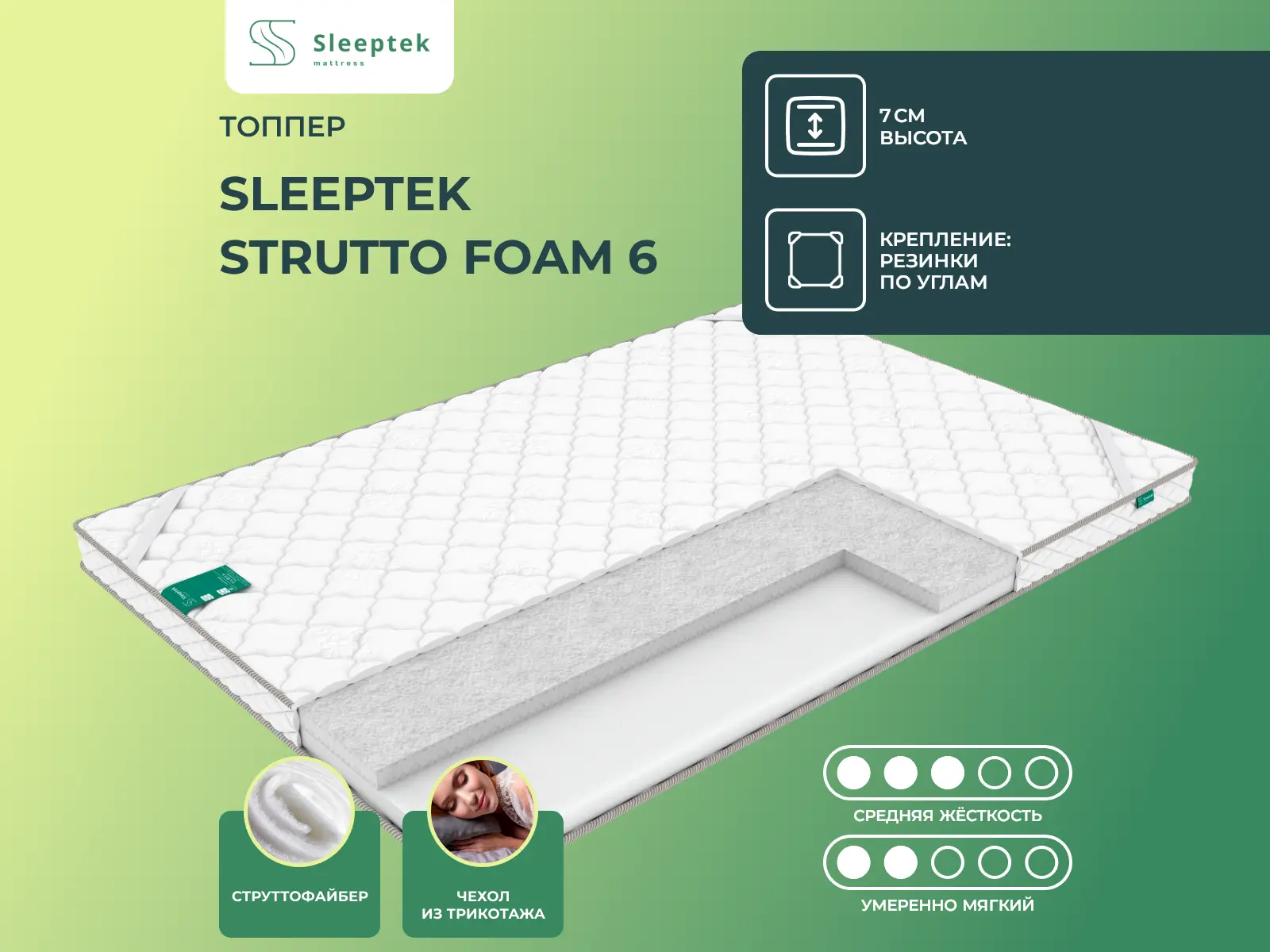 Топпер Sleeptek Strutto Foam 6 65х200 смАртикул С-78075
