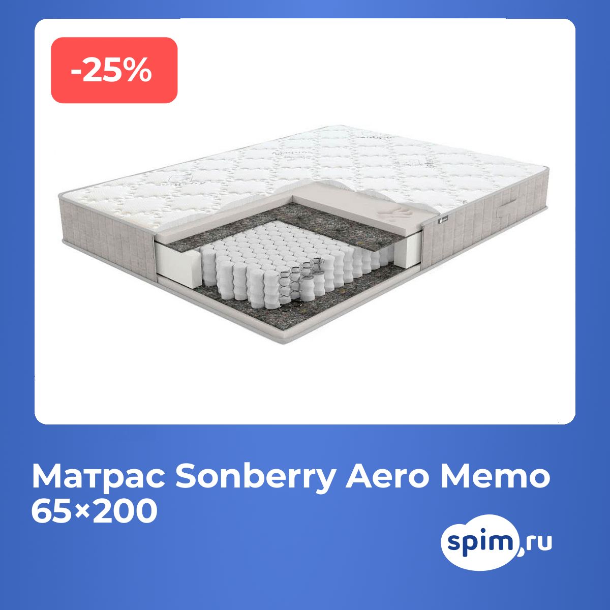 Матрас Sonberry Aero Memo с уникальной системой поддержки Fusion Support на основе независимых пружин Revolution.Уровень жесткости: мягкий. Состав: