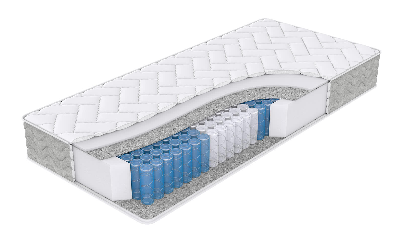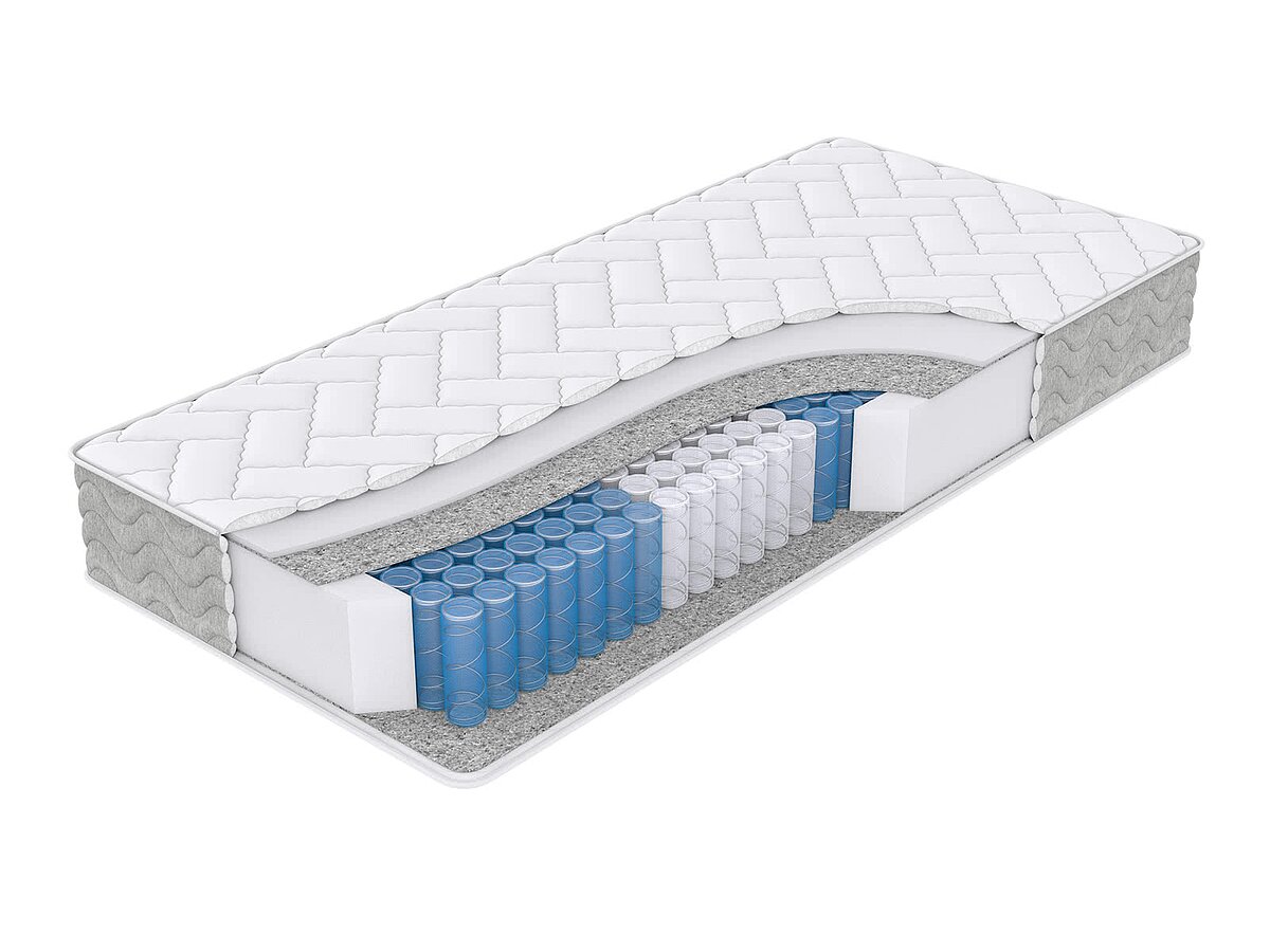 Независимые пружины, изолированные друг от друга, чутко реагируют на нагрузку в любой точке матраса «Basic» для комфортной анатомической поддержки.