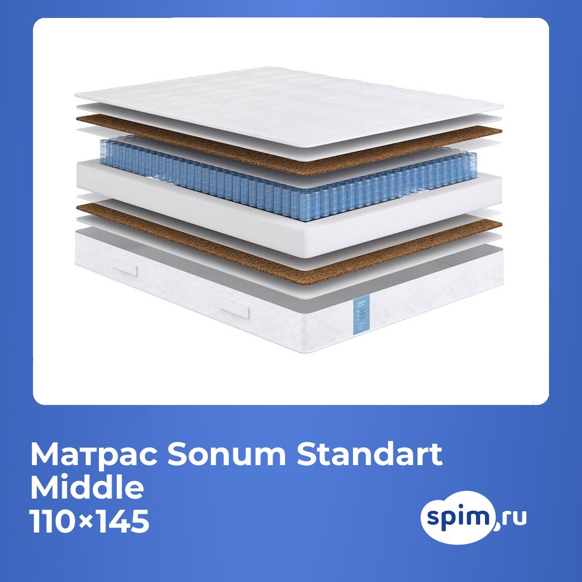 Матрас «Sonum Standart Middle» — средней жесткости, которая подходит большинству людей среднего телосложения. Это — оптимальный выбор и детям, и взрослым, и пожилым людям.