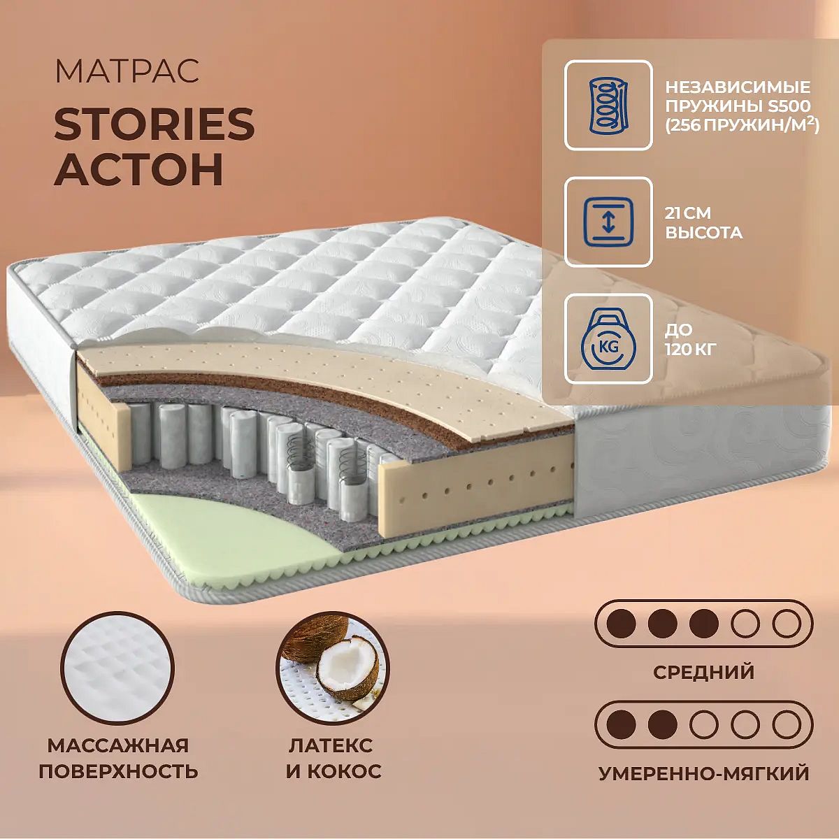 Преимущество матраса Астон — он имеет 2 различные по жесткости стороны: средне-жесткую и средне-мягкую.