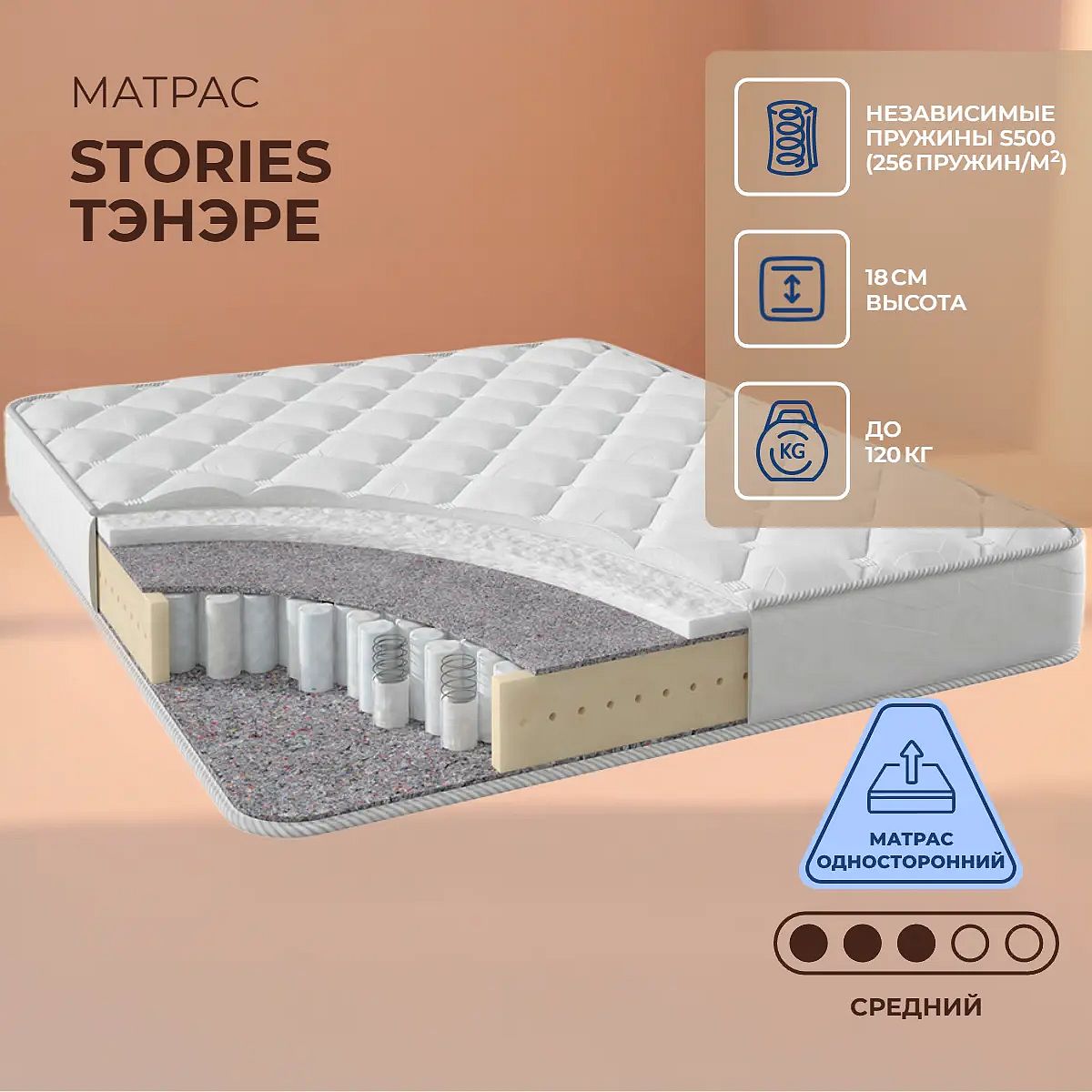 Матрас «Stories Тэнэре» — средней жесткости, которая подходит большинству людей среднего телосложения. Это — оптимальный вариант и детям, и взрослым, и пожилым людям.