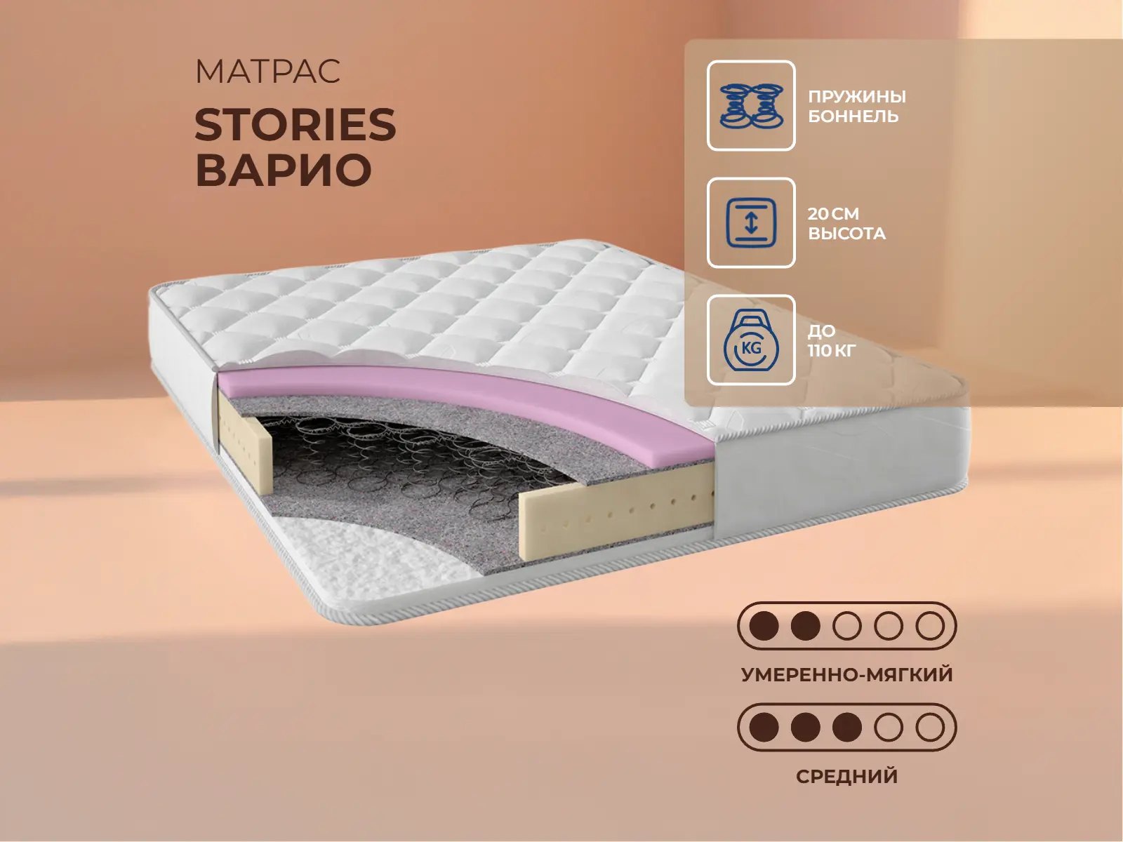 Матрас Варио рассчитан на нагрузку не более 110 кг на одно спальное место.